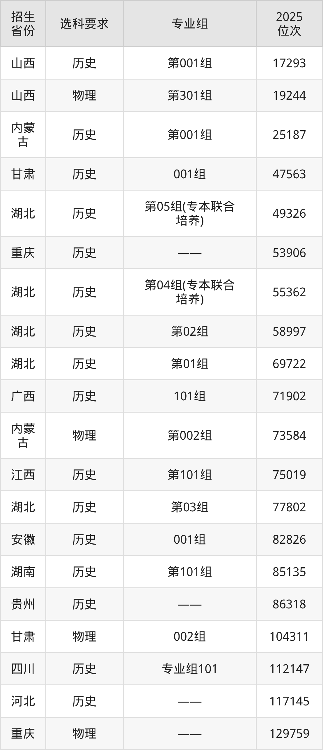 湖北生物科技职业学院2025年在全国各省的位次差异较大,最高位次是17293位(山西历史类)、最低位次是409061位(山东)。各省具体位次请看下图: