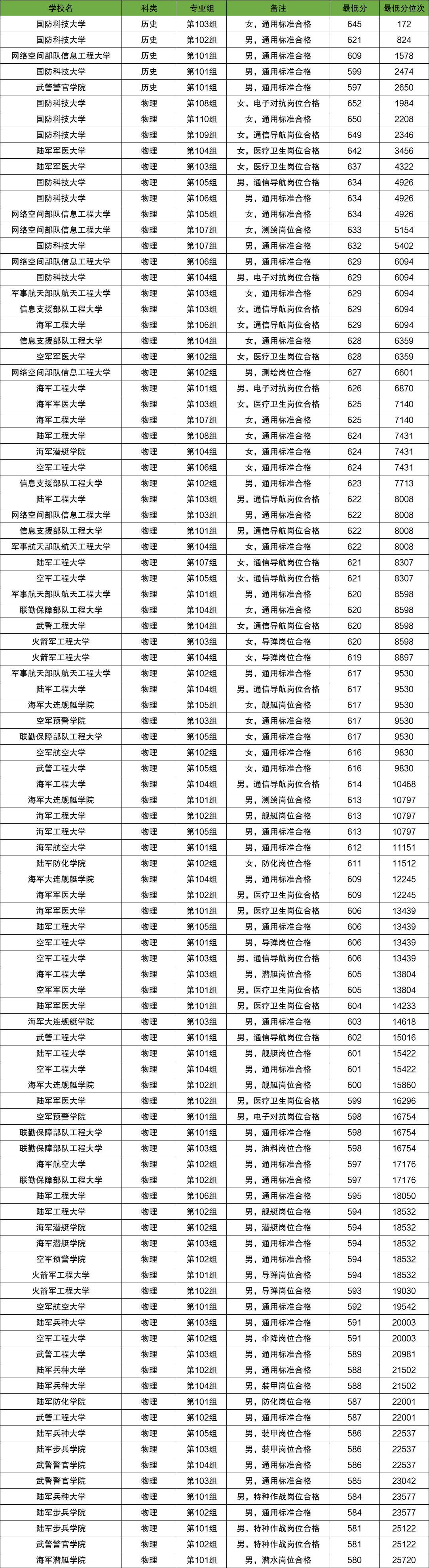 5.陆军兵种大学物理类最低分数线:男生586分、女生594分