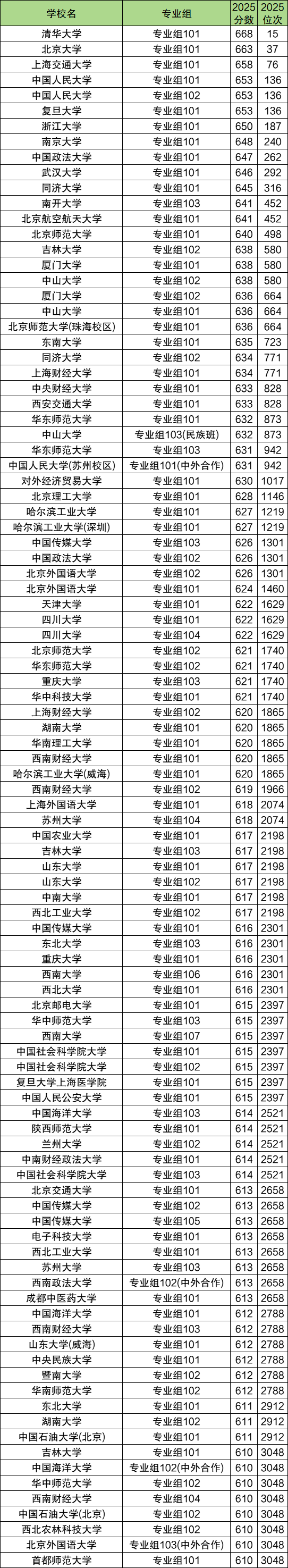 下图中,这100所院校的录取线在610-668分之间,位次排名在3048-15。
