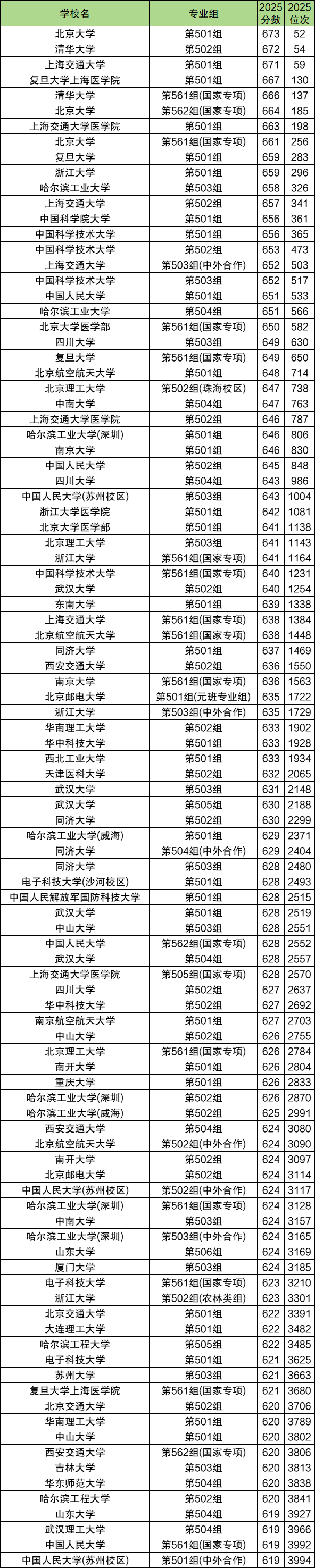 | 浙江大学医学院 | 专业组101 | 663 | 1500 |
