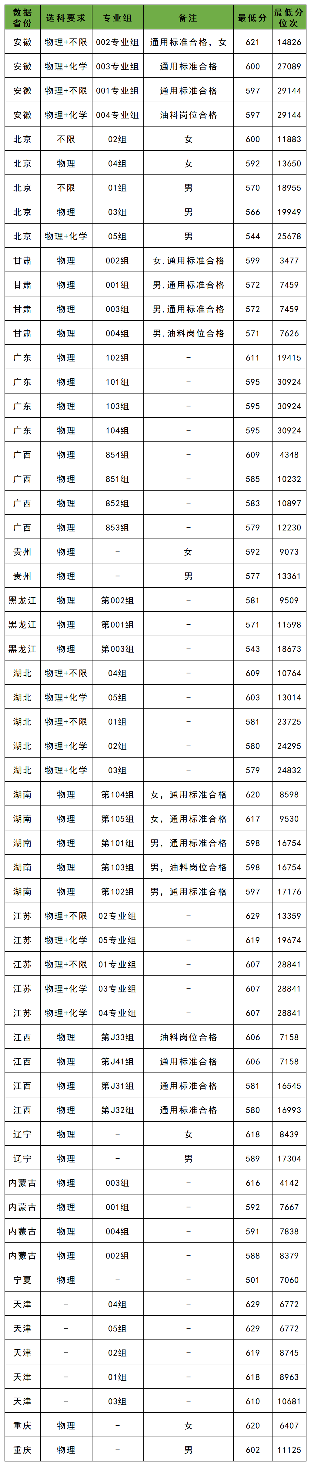 本文仅列举2025年联勤保障部队工程大学本科提前批录取分数线,包含其在各省各科招生的最低分数情况。