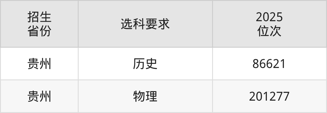 贵州电子科技职业学院2025年的位次差异较大,最高位次是86621位(贵州历史类)、最低位次是201277位(贵州物理类)。具体位次请看下图: