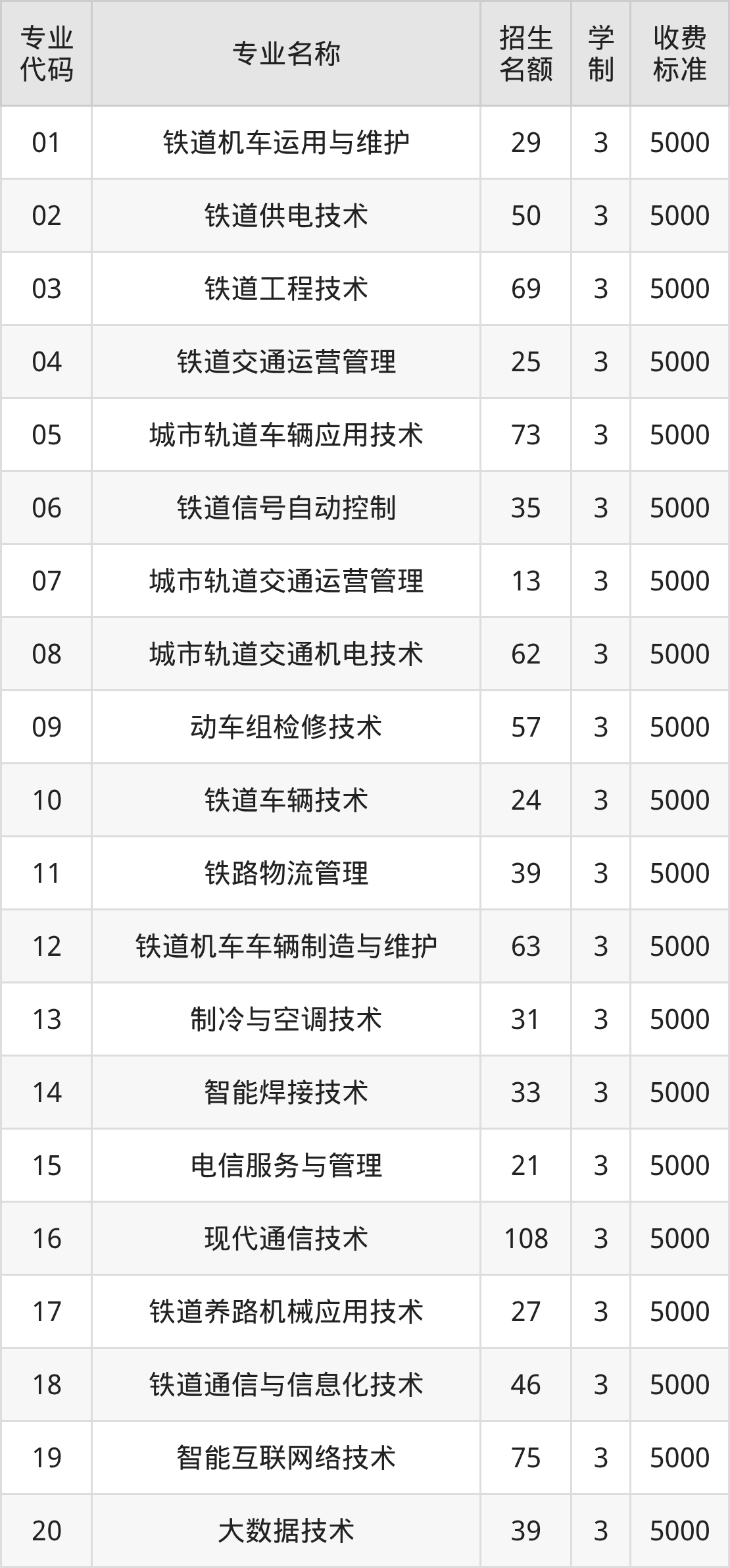 | 01 | 铁道交通运营管理 | 23 | 3 | 5000 |