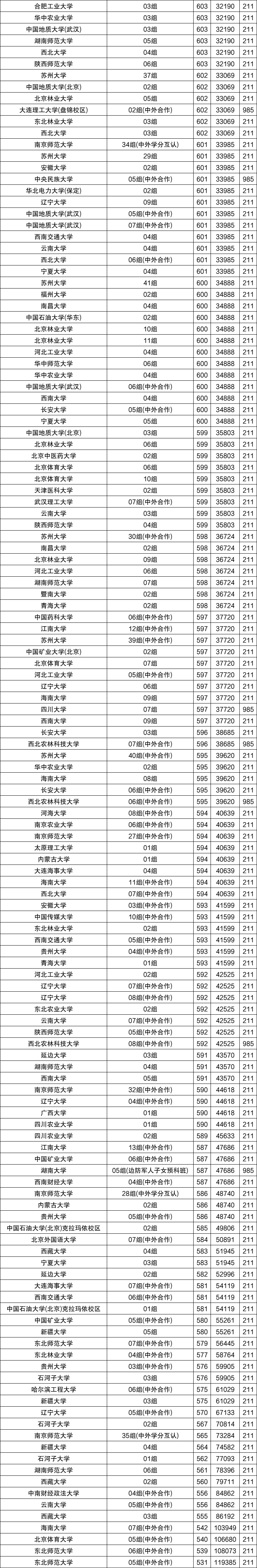 历史类考生最低544分能上211大学、而想要上985大学则最低需要585分;物理类考生最低531分能上211大学,而想要上985大学则最低需要587分。