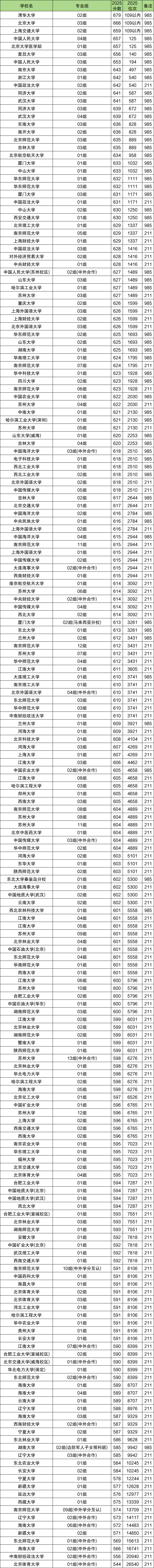 985大学中收分最高的是清华大学02组(679分)、211大学收分最高的则是中国政法大学02组(642分),完整名单及分数线一览表如下: