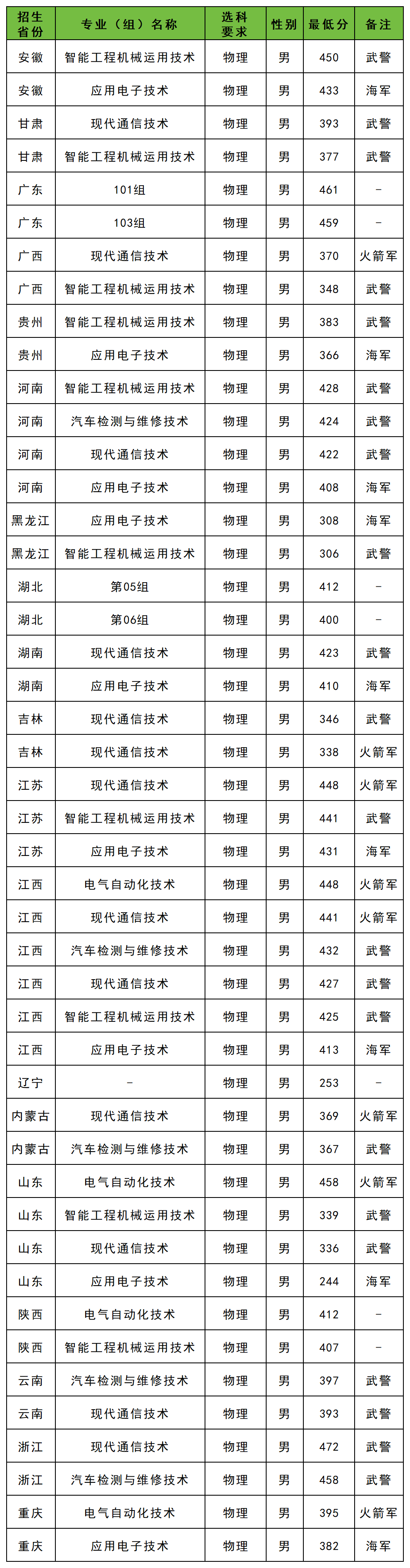 下面是江西水利电力大学2025年在全国各省定向士官招生分数线一览表,供参考: