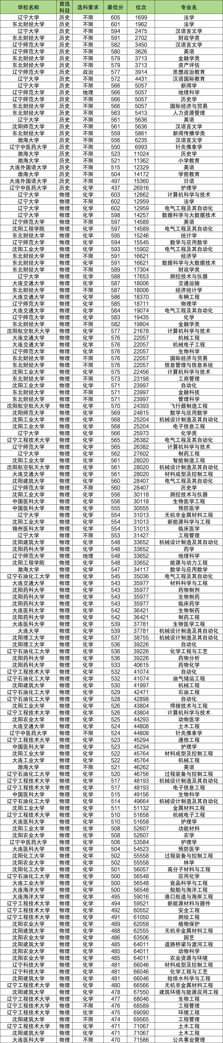 代表院校、专业及分数:沈阳航空航天大学(计算机科学与技术)577分、辽宁师范大学(计算机科学与技术)565分、锦州医科大学(临床医学)554分等。