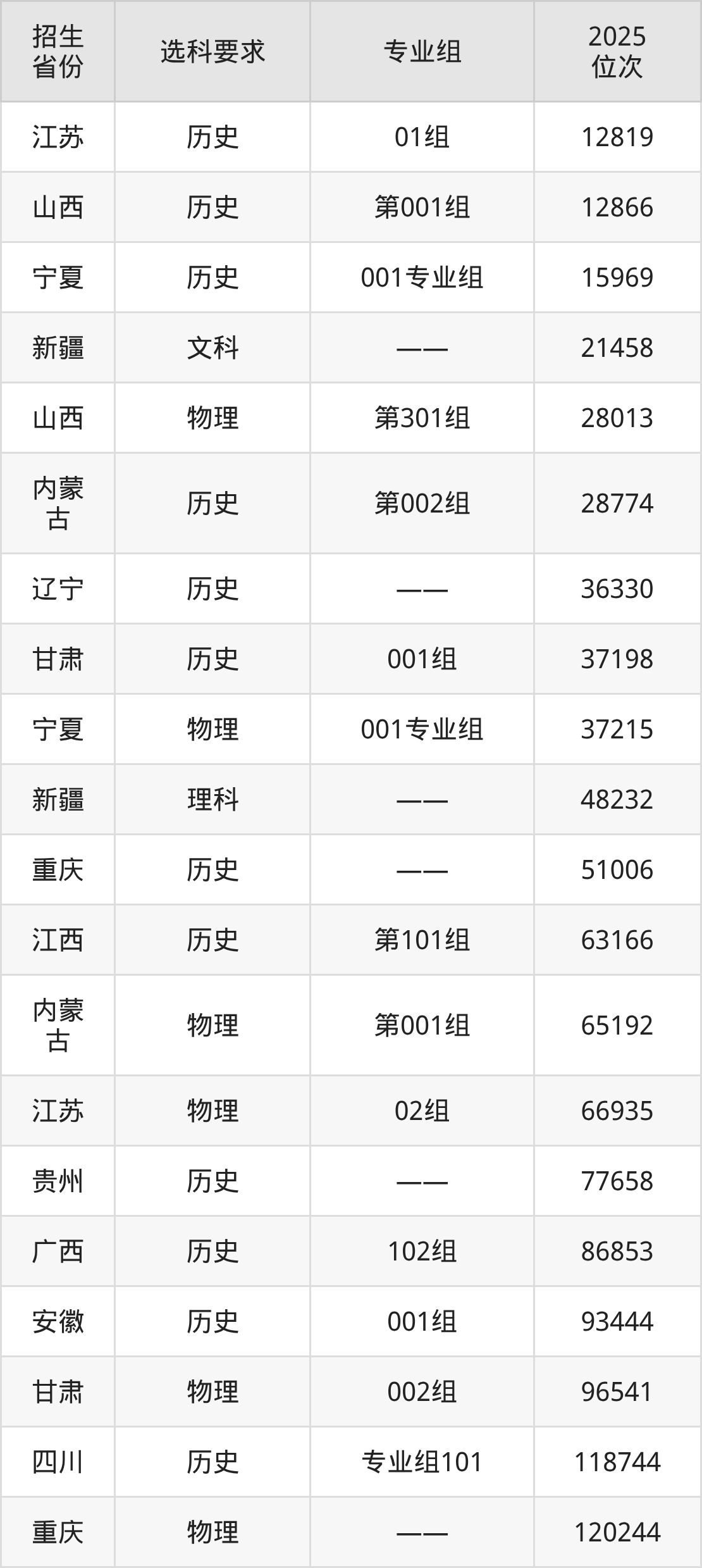 西安职业技术学院2025年在全国各省的位次差异较大,最高位次是12819位(江苏历史类)、最低位次是389986位(山东)。各省具体位次请看下图: