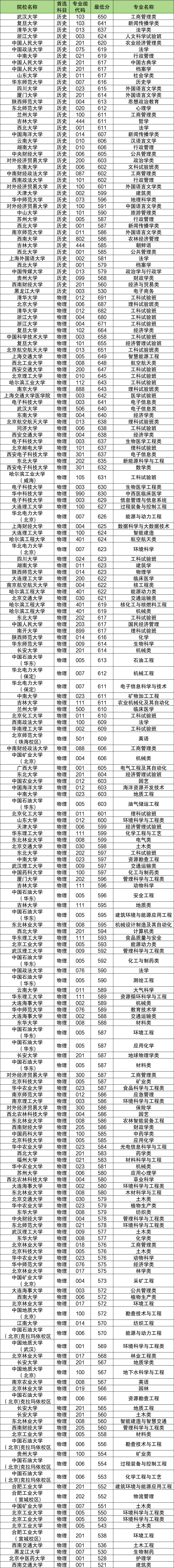 代表院校、专业及分数:中国政法大学(法学)619分、中南大学(行政管理)619分、华东师范大学(历史学)616分等。