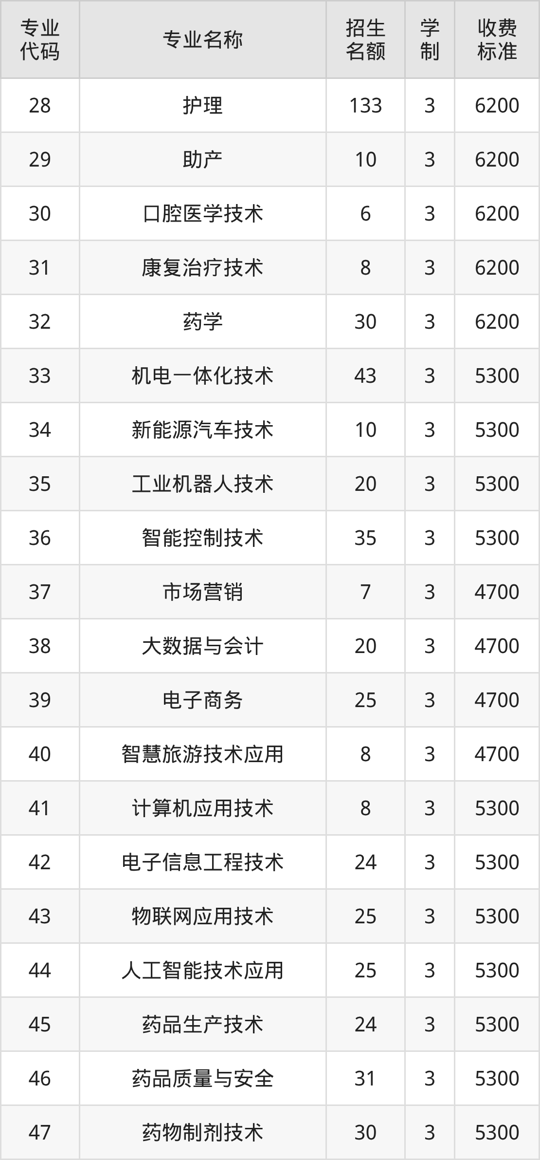 | 专业 代码 | 专业名称 | 招生 名额 | 学 制 | 收费 标准 |