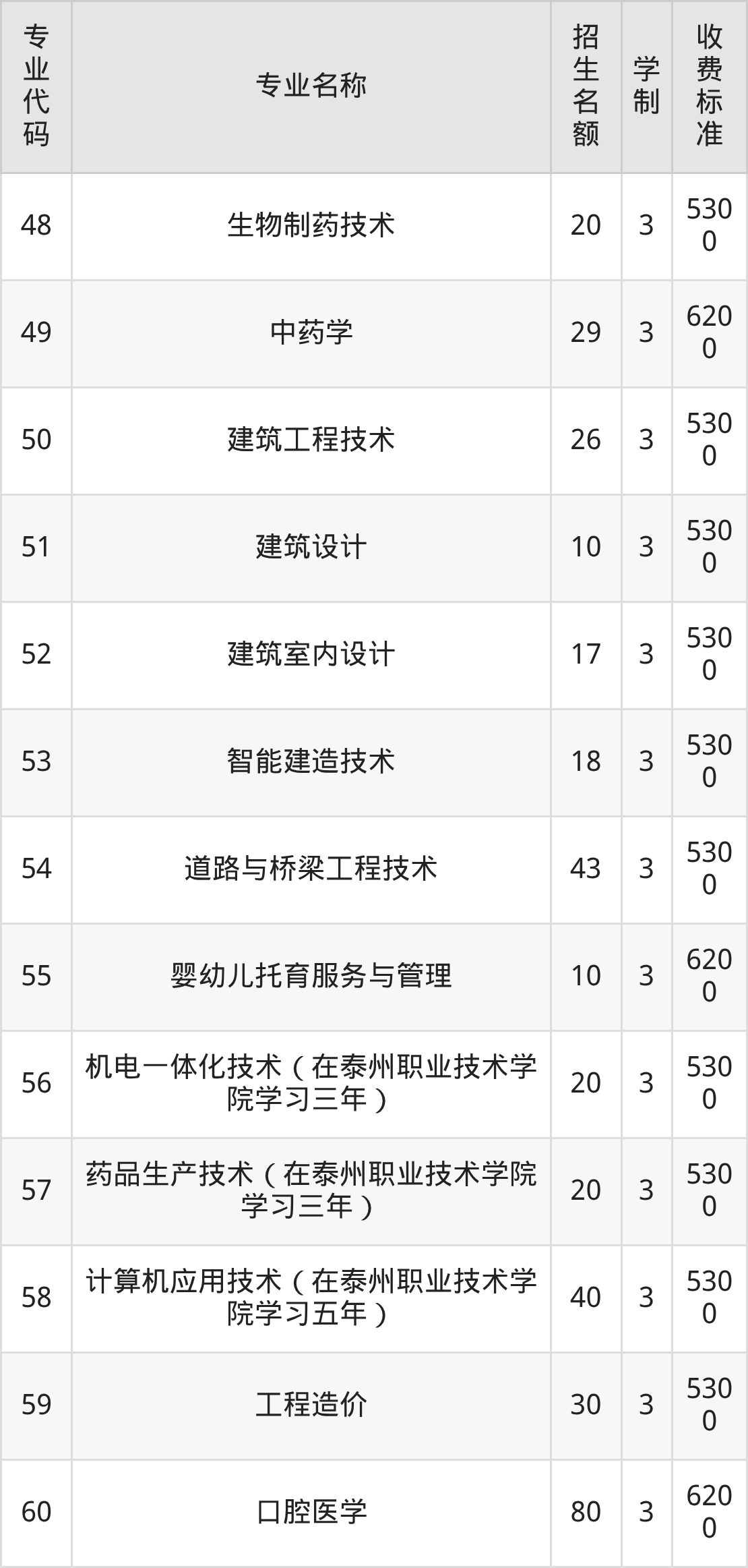下方展示的是最新完整版本的招生计划,请想要报考泰州职业技术学院的同学参考!