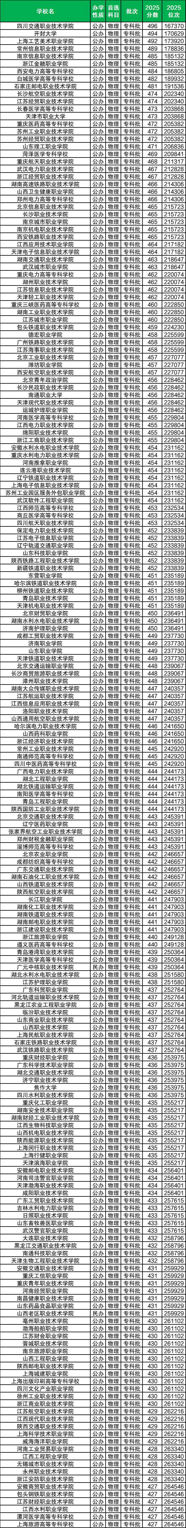 (三)2025全国专科大学录取分数线表:200分-496分