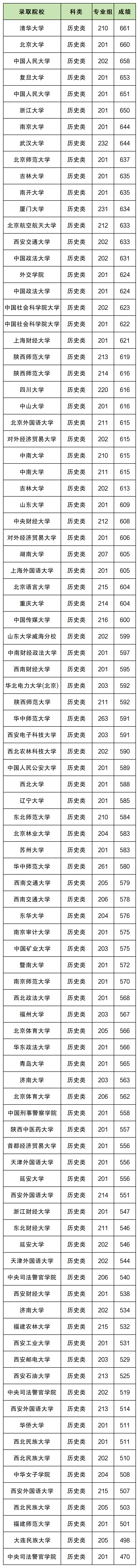 以下是2025年各大学国家专项计划在陕西历史类的录取分数线一览表(需滑动查阅):