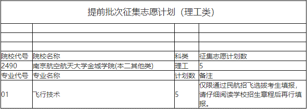 | 院校代号 | 院校名称 | 科类 | 征集志愿计划数 |