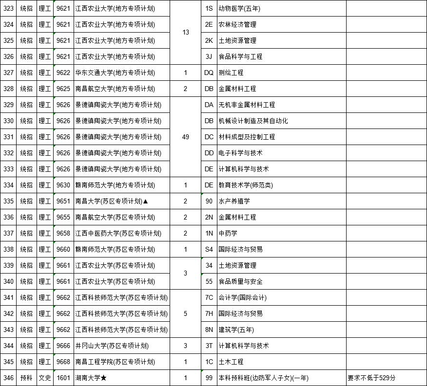 2022年江西本科提前批征集志愿名单: