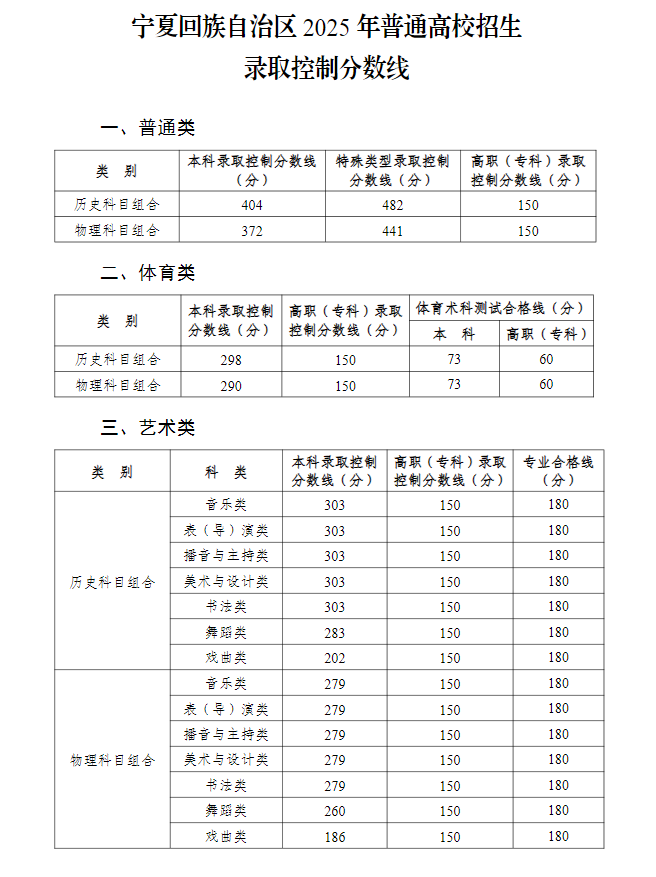 一、2025年宁夏高考录取分数线