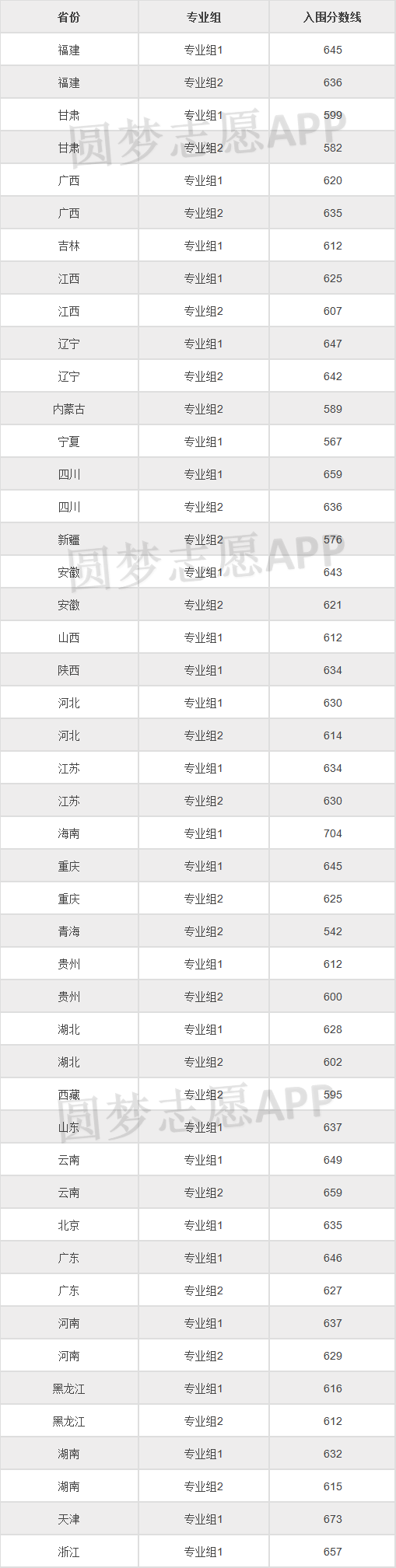 3、同济大学强基计划在重庆市的最高分为645分,最低为625分,共计有2个专业组。