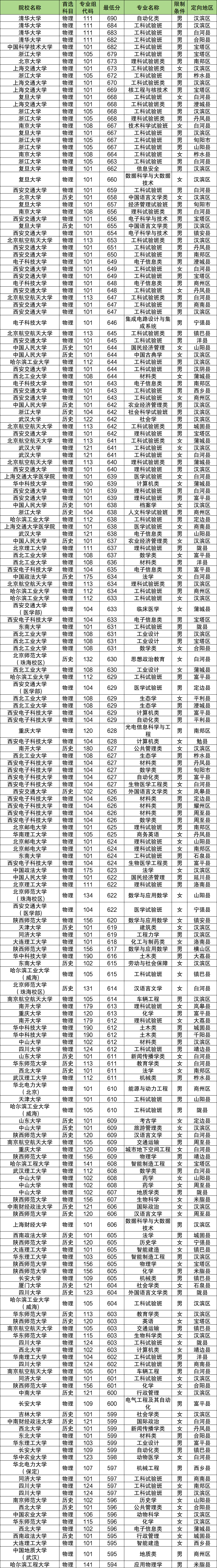 陕西省高校专项计划是面向本地实施区域考生的优质升学政策,旨在促进教育公平,汇聚北京大学、清华大学、复旦大学等多所顶尖及重点高校参与招生。计划涵盖历史、物理两大首选科目,学科方向覆盖文史、理工、财经、政法、师范、医学等多个优势领域,部分专业组关联性别限制及定向地区要求,各高校分数线梯度分明,形成“顶尖高校-重点高校-特色院校”的差异化升学路径。其中历史类分数区间541-658分,物理类分数区间483-690分。