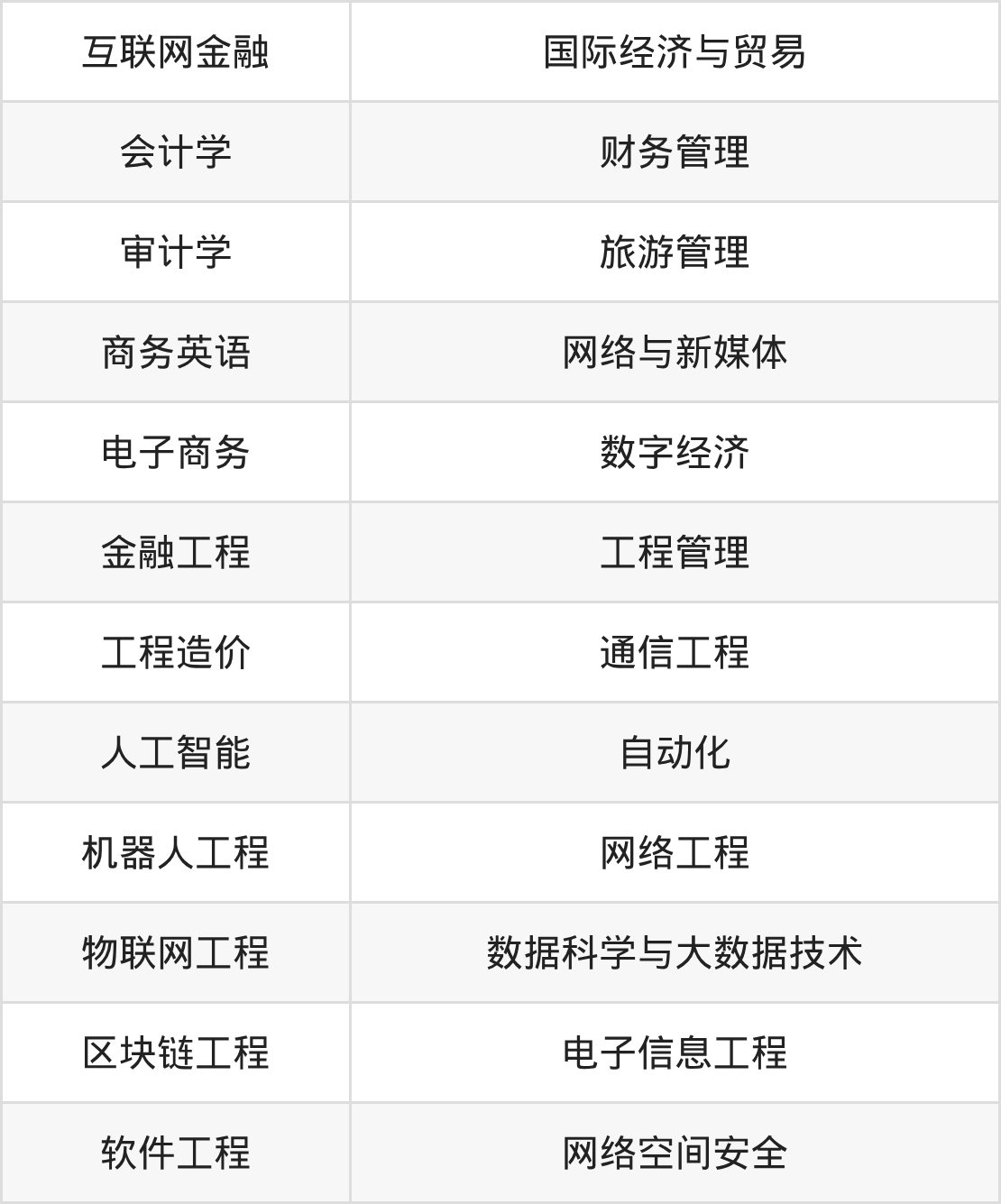 根据2025年湖南高考招生计划可知,湖南信息学院招生专业包含互联网金融、国际经济与贸易、会计学等,完整版名单如下。