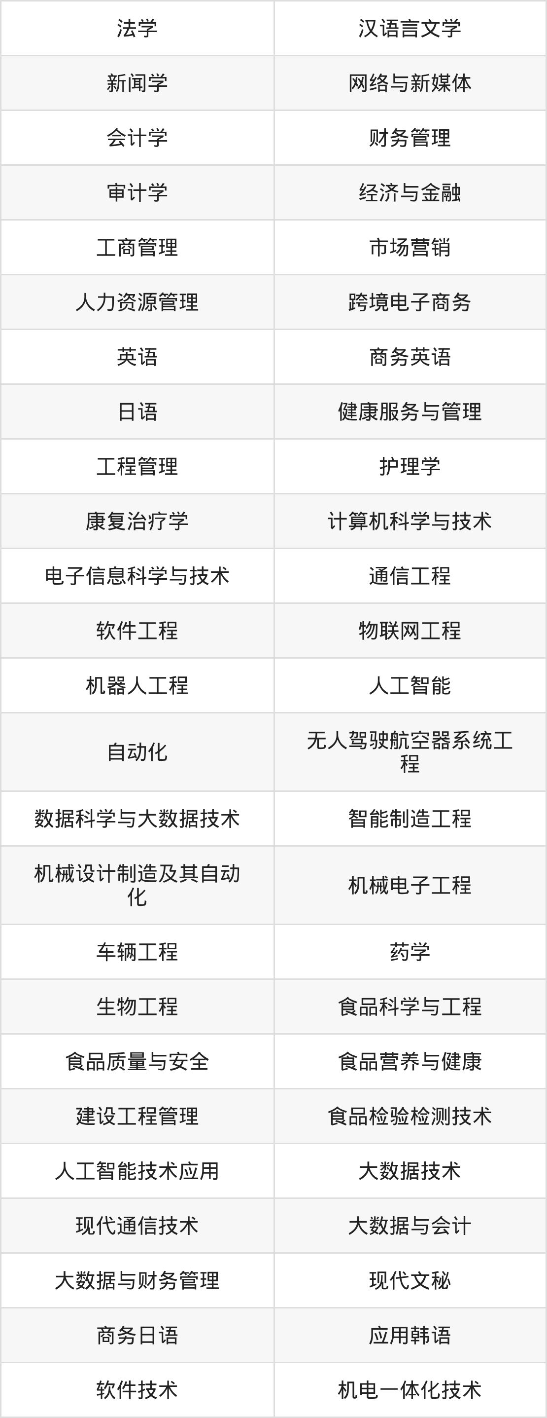 根据2025年山东高考招生计划可知,烟台理工学院招生专业包含法学、汉语言文学、新闻学等,完整版名单如下。