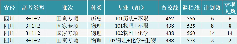 四川省教育考试院暂未统一公布国家专项计划2025年分数线,本站正根据各校录取情况持续收集中,以下是部分省内院校2025年国家专项录取分数: