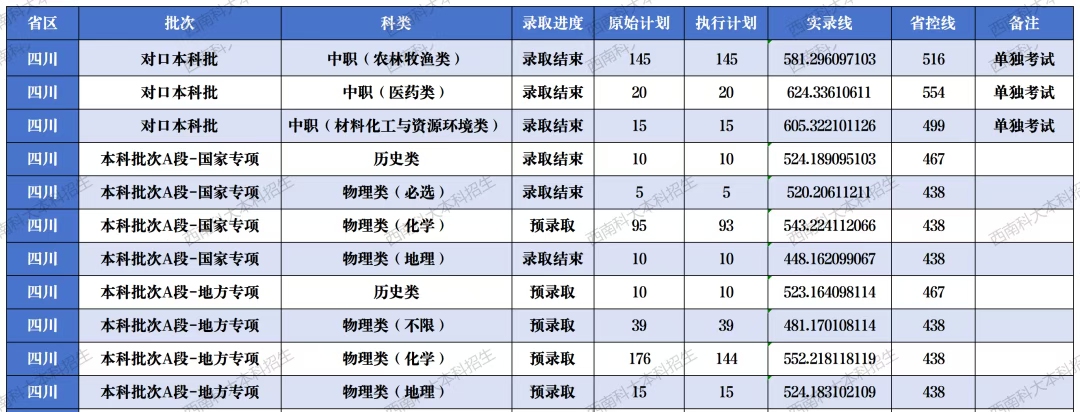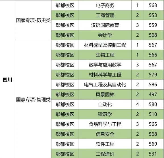 其中四川大学历史类最低608分,物理类最低618分;西华大学历史类最低553分、物理类最低497分等。