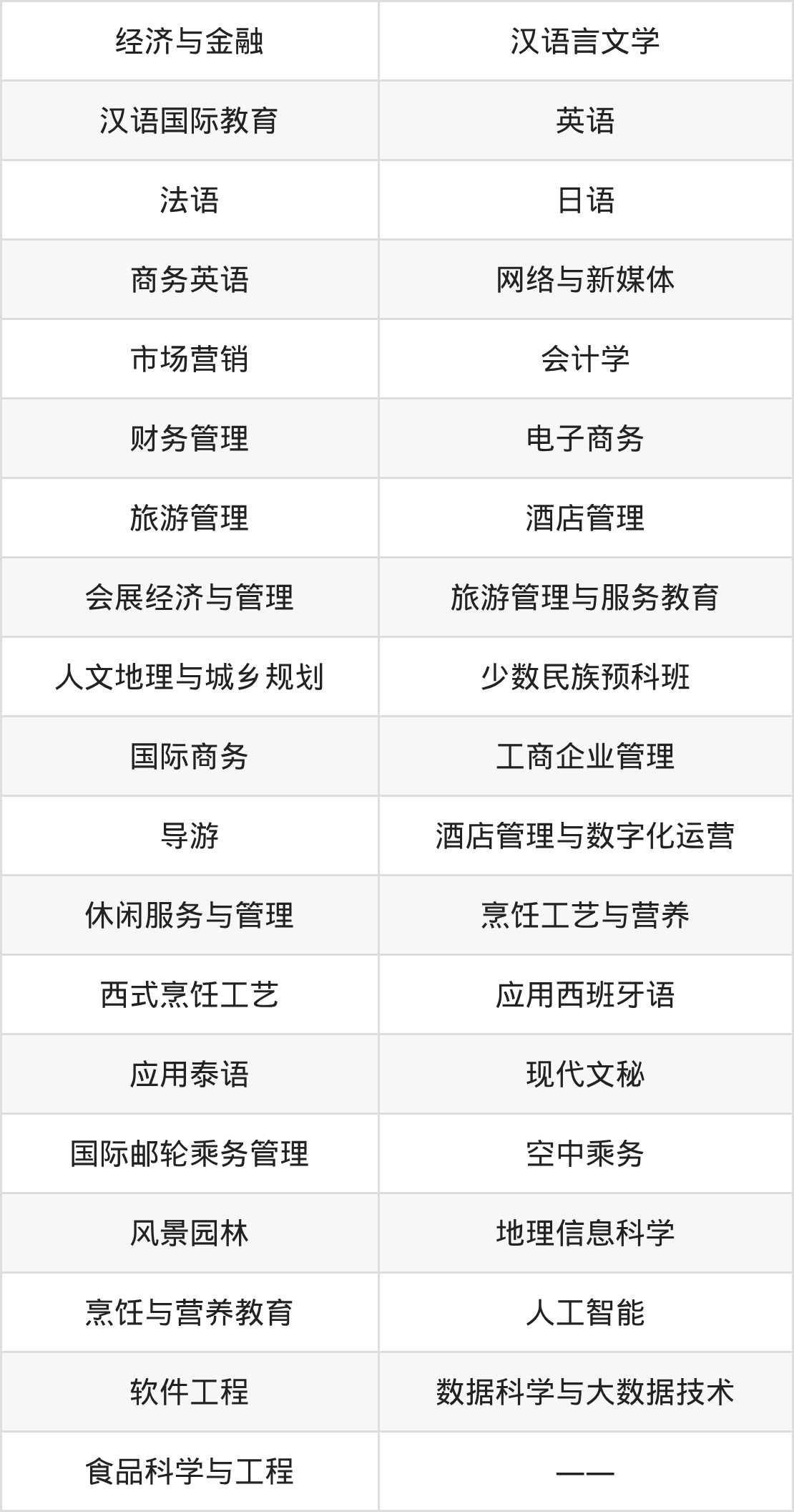 根据2025年广西高考招生计划可知,桂林旅游学院招生专业包含经济与金融、汉语言文学、汉语国际教育等,完整版名单如下。
