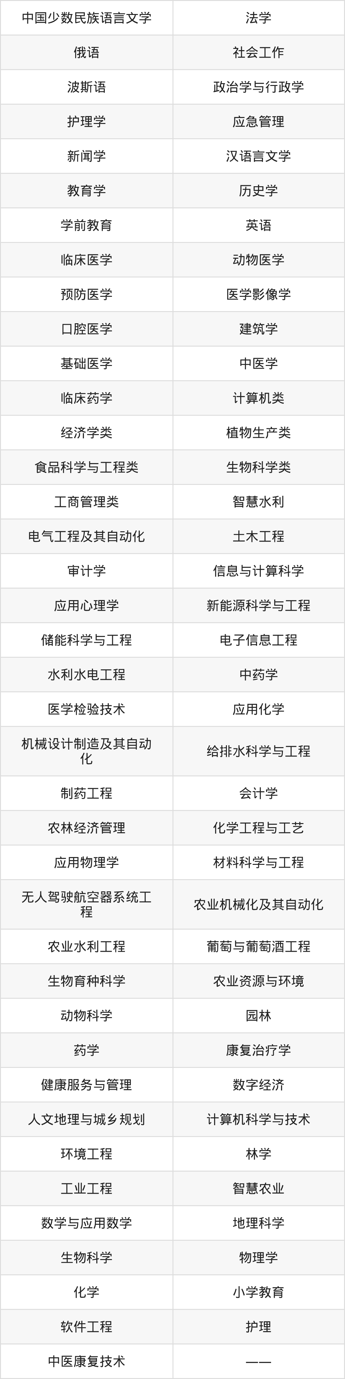 根据2025年新疆高考招生计划可知,石河子大学招生专业包含中国少数民族语言文学、法学、俄语等,完整版名单如下。