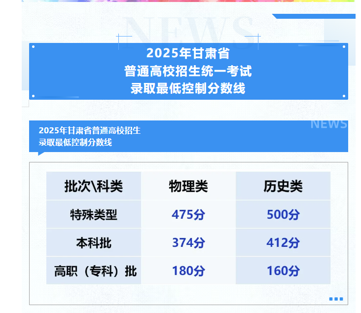一、2025年甘肃高考录取分数线