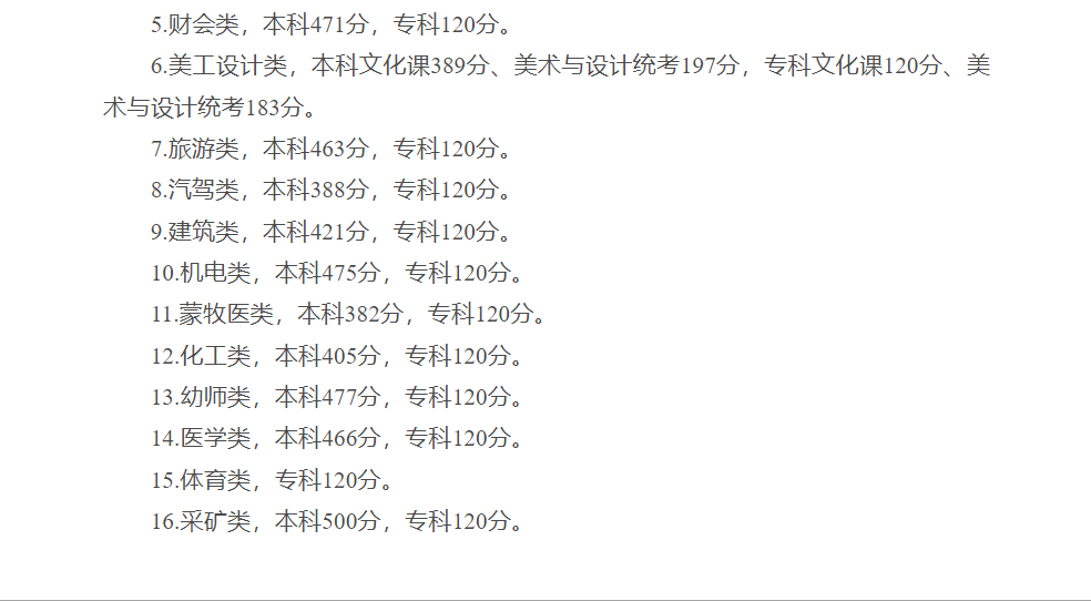 专科:物理类160分、历史类160分。