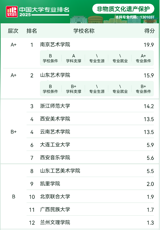 非物质文化遗产保护专业大学排名如下(滑动查阅):