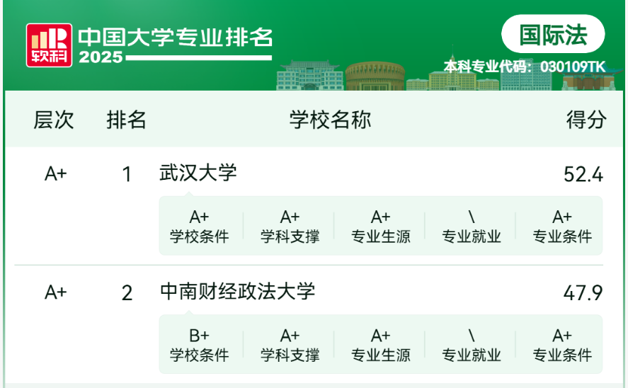 国际经贸规则专业大学排名如下(滑动查阅):