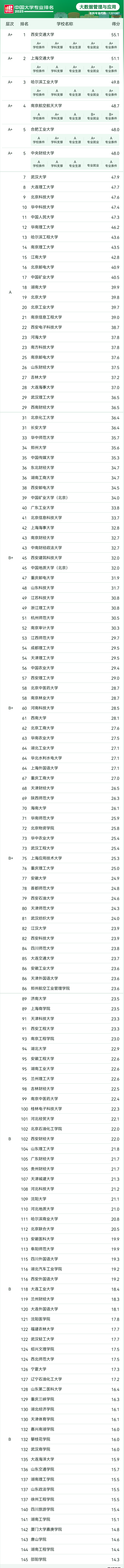 大数据管理与应用专业大学排名如下(滑动查阅):