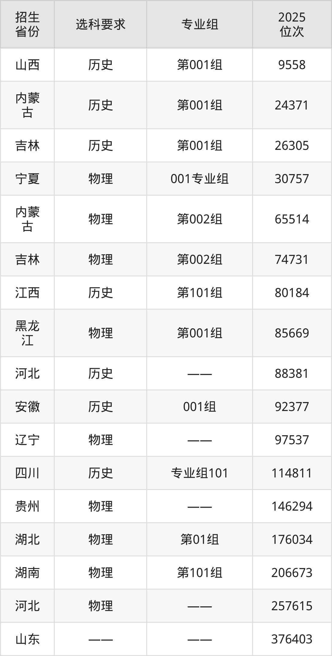 吉林水利电力职业学院2025年在全国各省的位次差异较大,最高位次是9558位(山西历史类)、最低位次是376403位(山东)。各省具体位次请看下图: