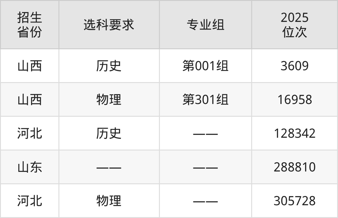 河北政法职业学院2025年在全国各省的位次差异较大,最高位次是3609位(山西历史类)、最低位次是305728位(河北物理类)。各省具体位次请看下图:
