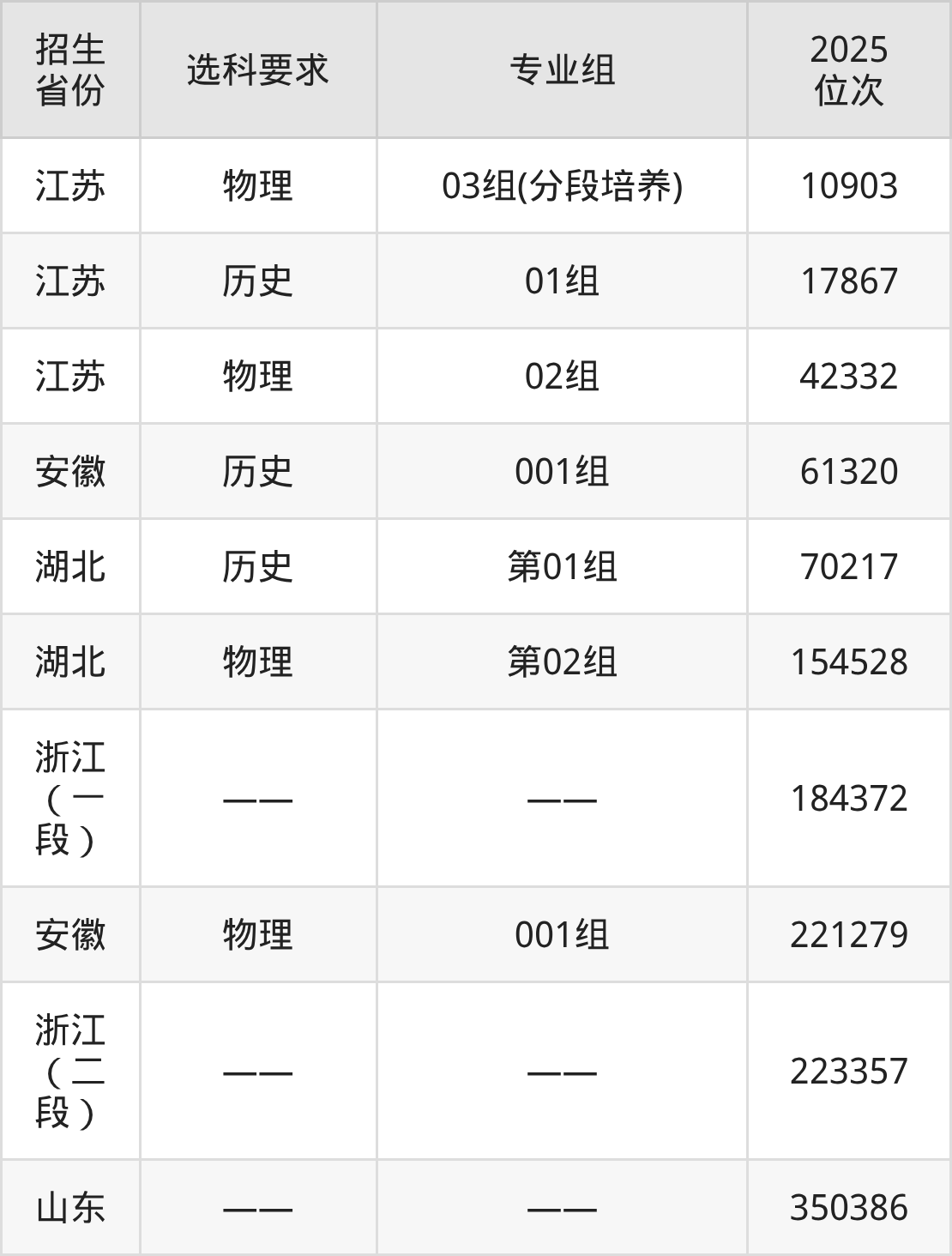 常州工程职业技术学院2025年在全国各省的位次差异较大,最高位次是10903位(江苏物理类)、最低位次是350386位(山东)。各省具体位次请看下图: