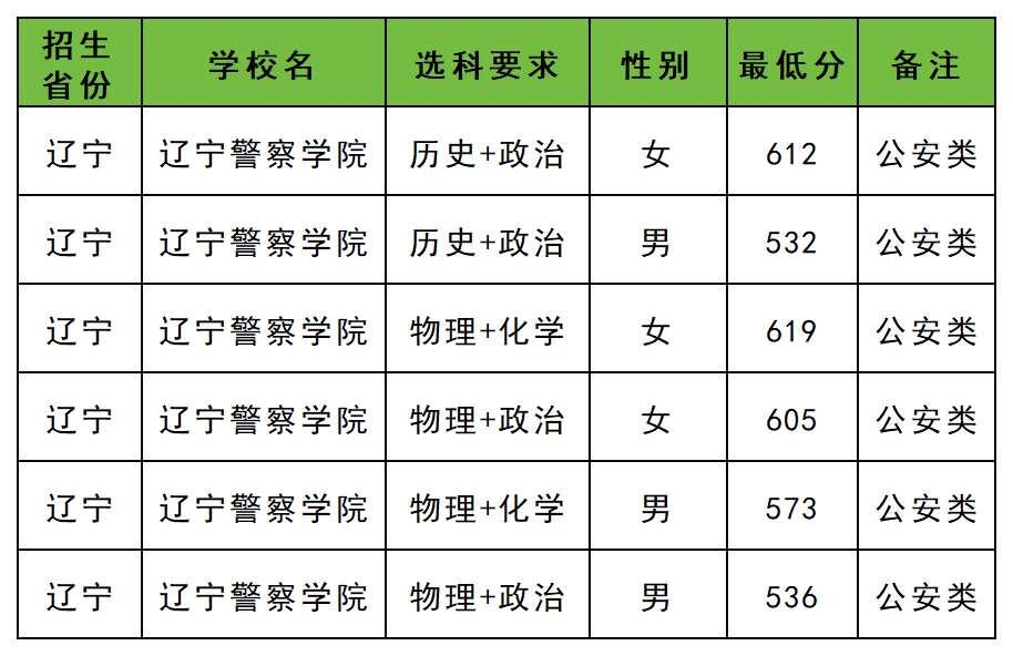 如2025年辽宁警察学院在辽宁省物理类招生最低分为536分,历史类招生最低分为532分。