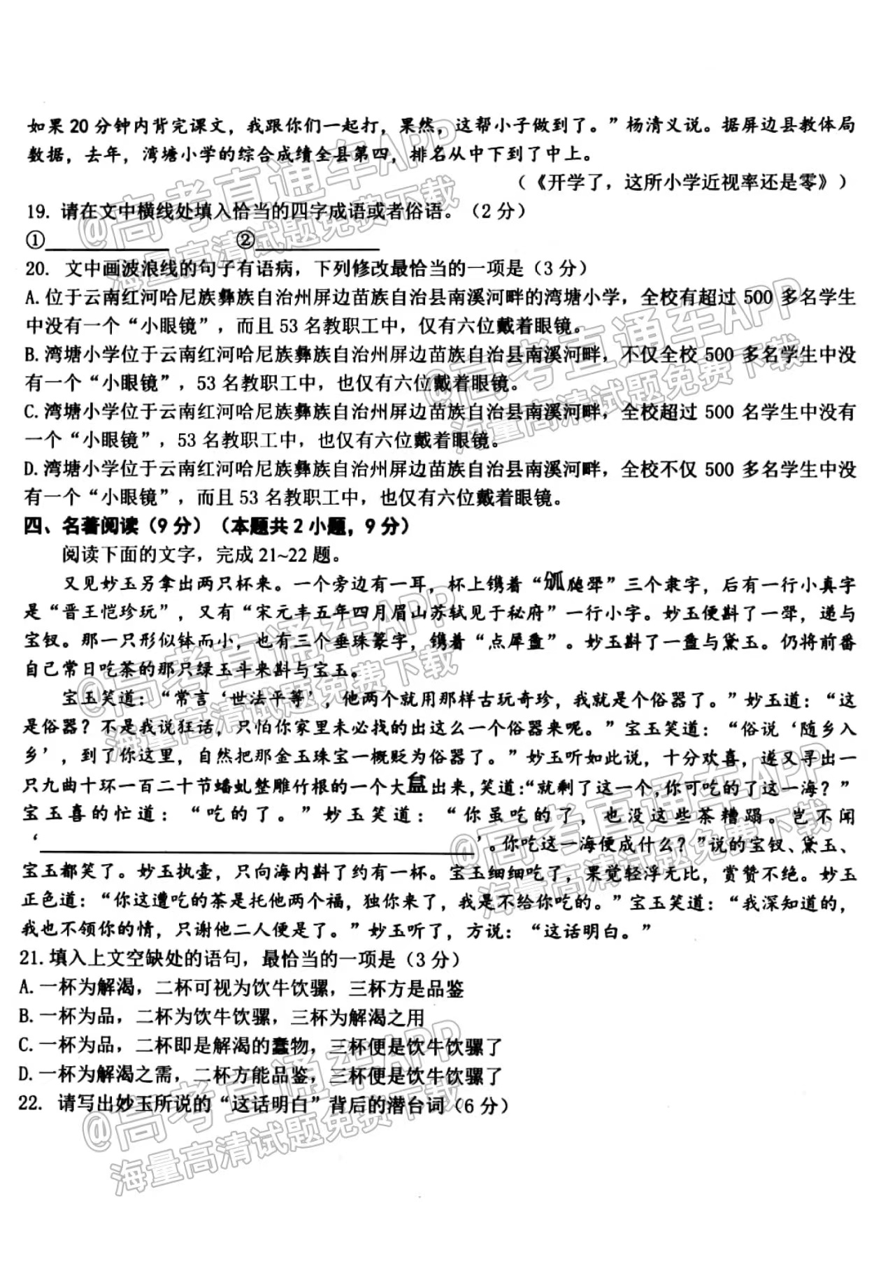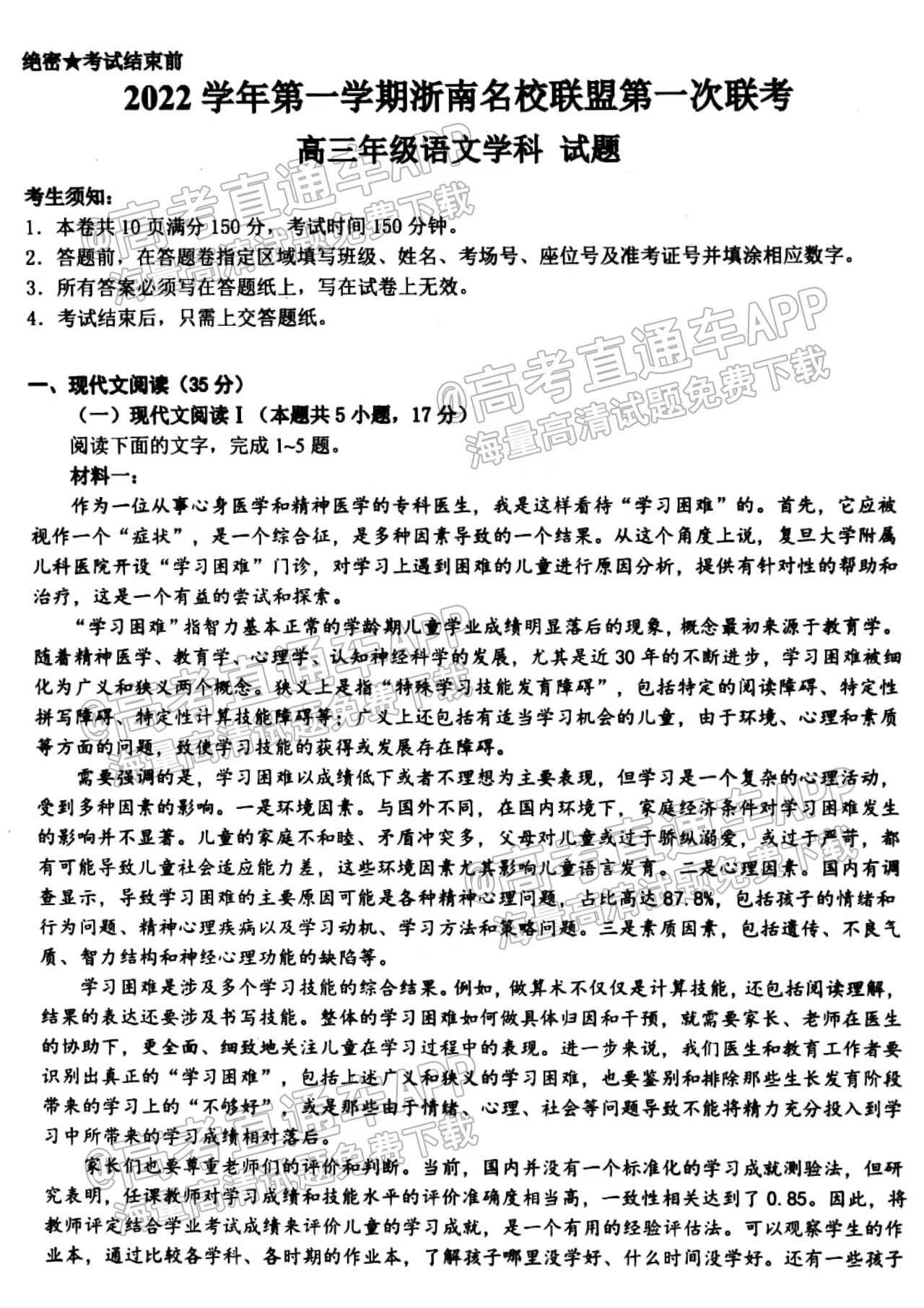 2023浙江名校(温州九校)是于10月5号开考的,目前考试已结束,同学们应该很想知道语文的试题及参考答案。在本文,小编整理了2023浙南名校(温州九校)高三十月联考语文试题及参考答案,供同学们参考。
