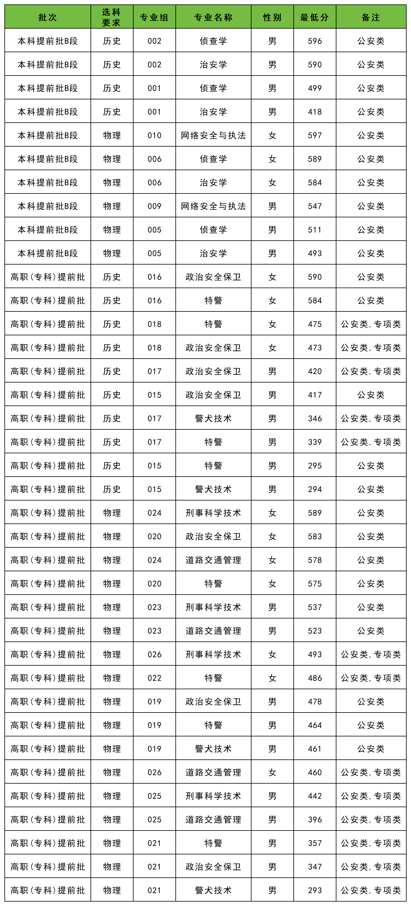 本文仅列举2025年内蒙古警察学院提前批录取分数线,包含其在内蒙古各科招生的最低分数情况。