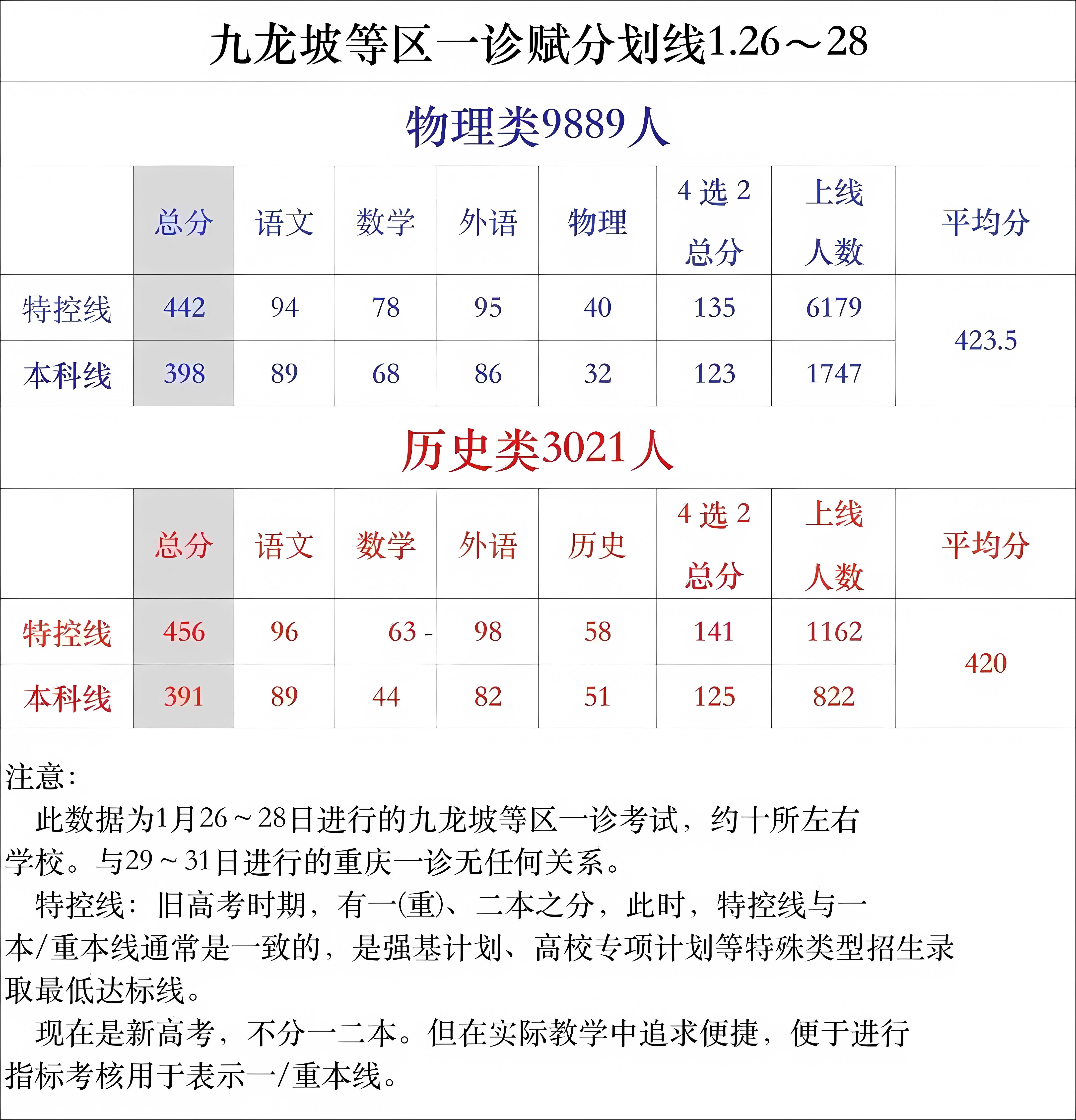 本文将系统梳理2026年重庆九龙坡一诊与康德一诊的分数线、一分一段表及赋分表,供大家参考。