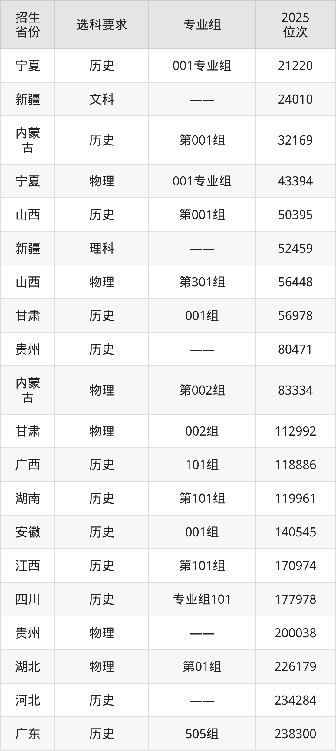 广东肇庆航空职业学院2025年在全国各省的位次差异较大,最高位次是21220位(宁夏历史类)、最低位次是680464位(山东)。各省具体位次请看下图: