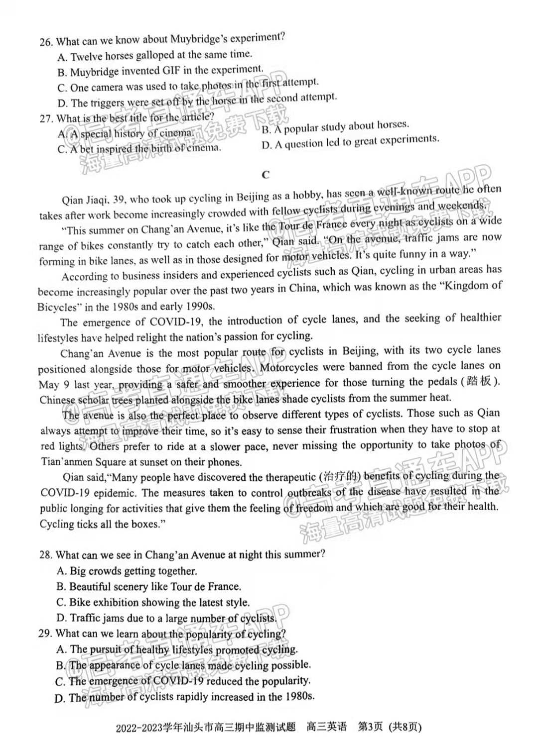 2023广东汕头高三10月市统考将在2022年10月21日开考,相信大家都非常想要知道广东汕头高三10月市统考英语科目的答案及解析,小编就为大家带来2023广东汕头高三10月市统考英语答案解析及试卷汇总。