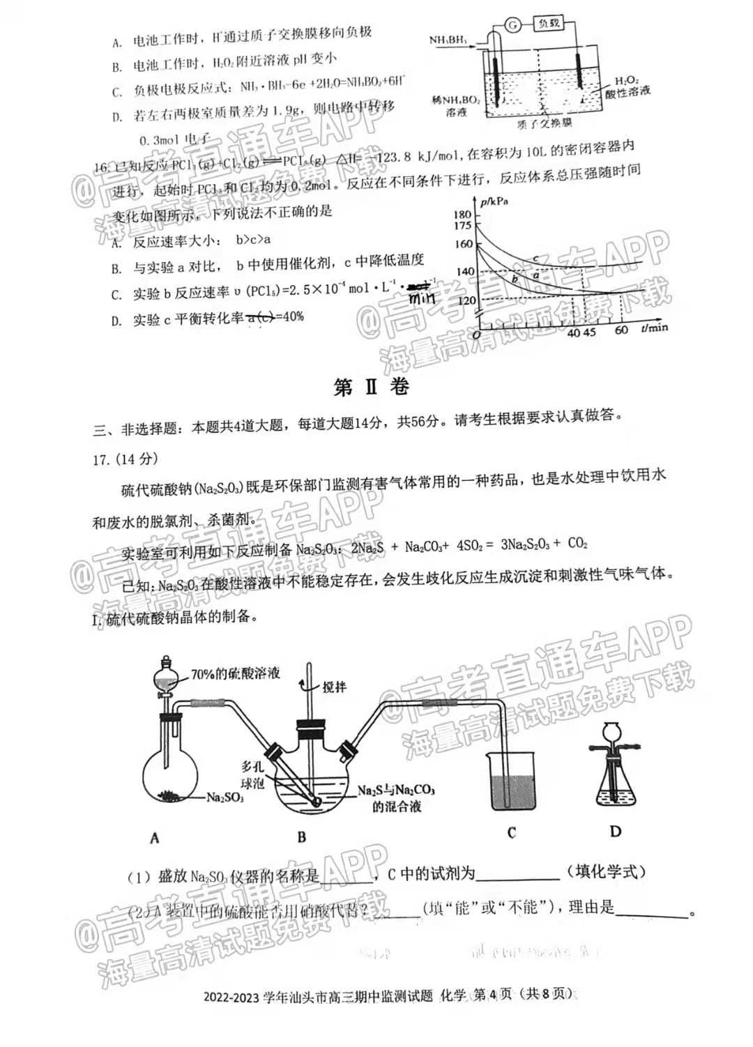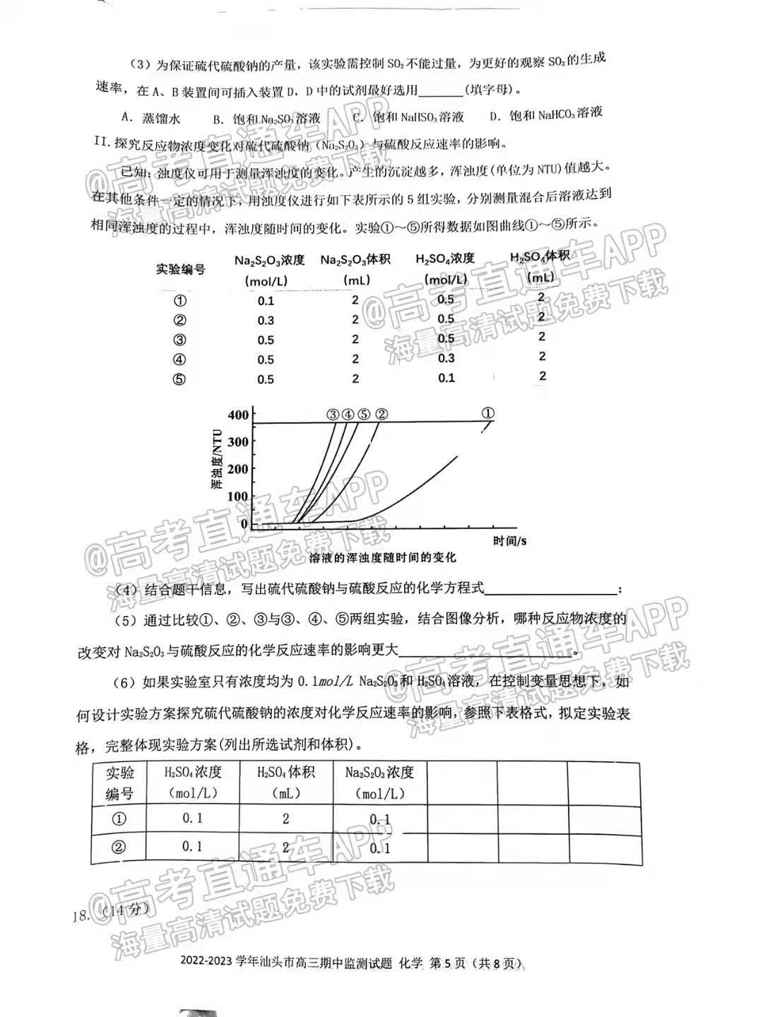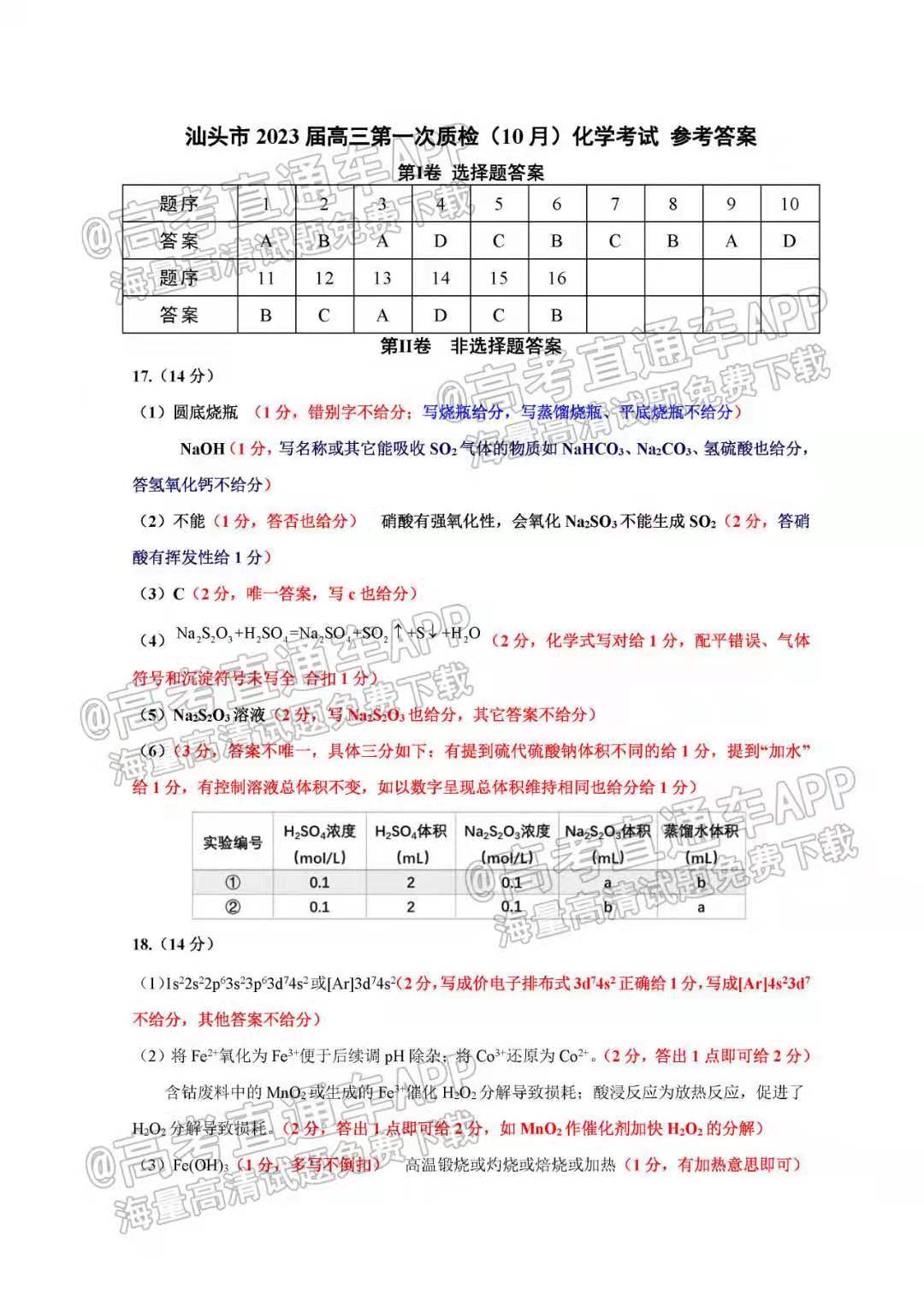 目前2023广东汕头高三10月市统考化学答案已更新,具体答案情况如下,如果大家想要了解更多试卷内容,可以进入高考100网进行查看,本答案共3页,仅供参考。