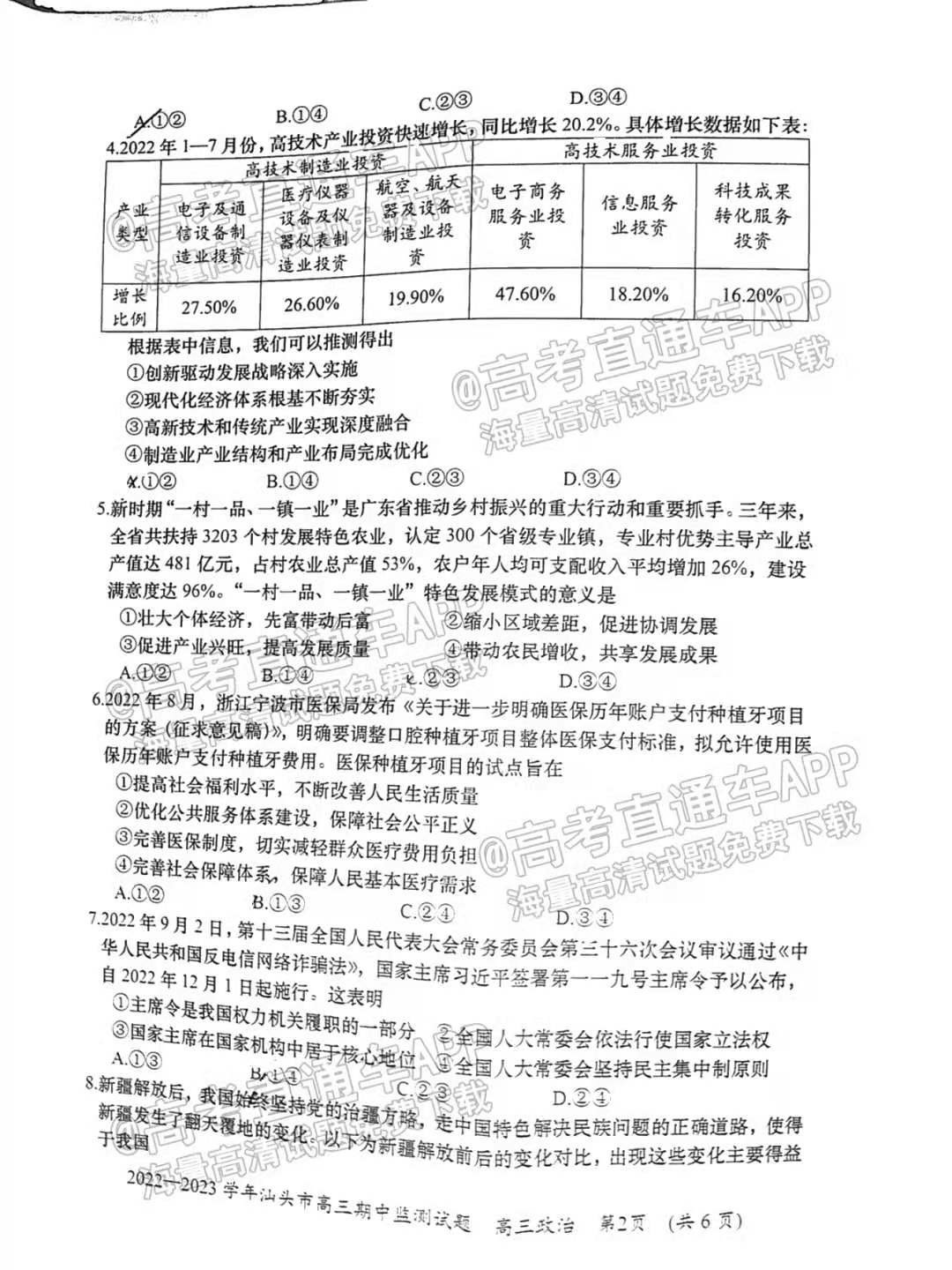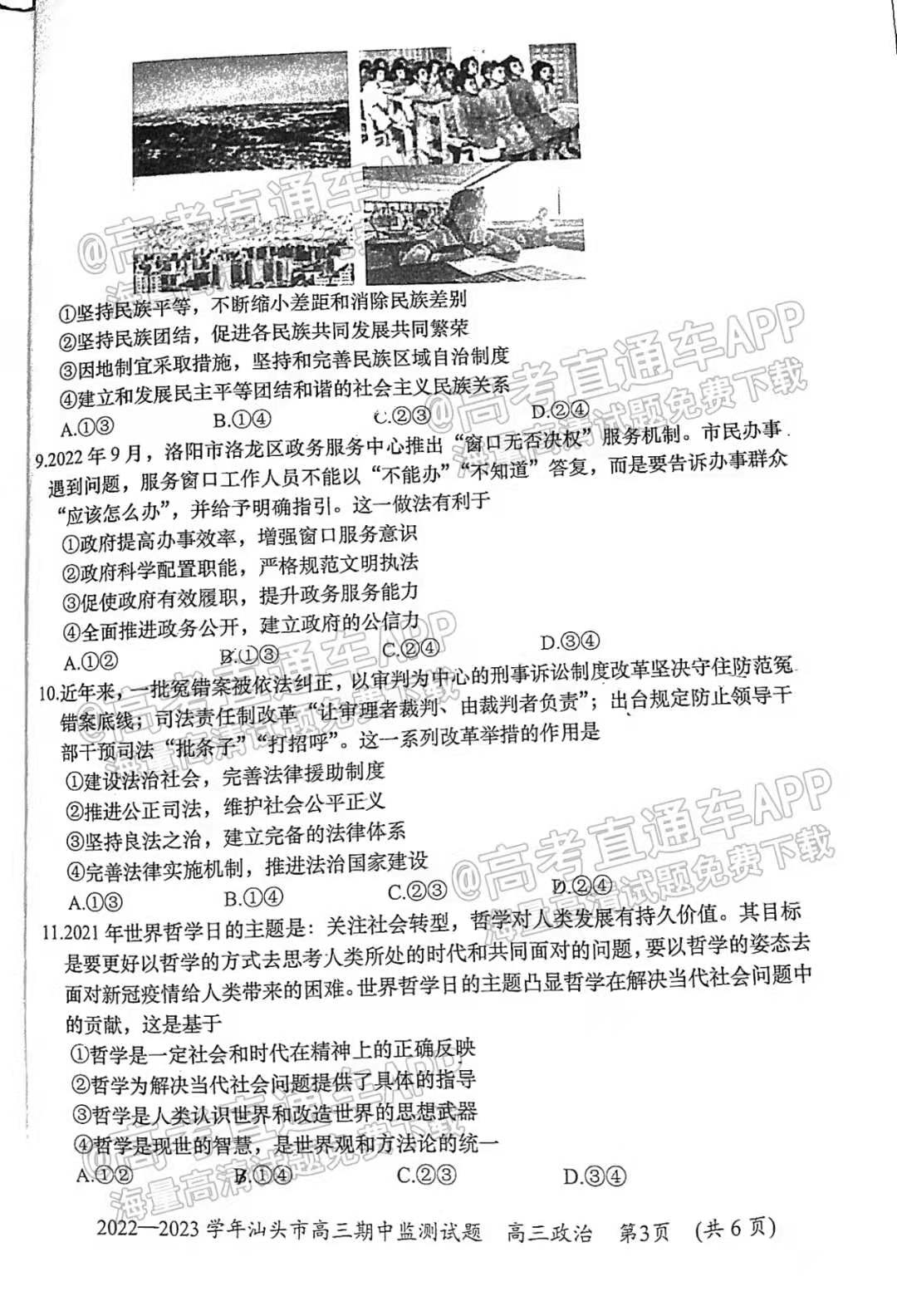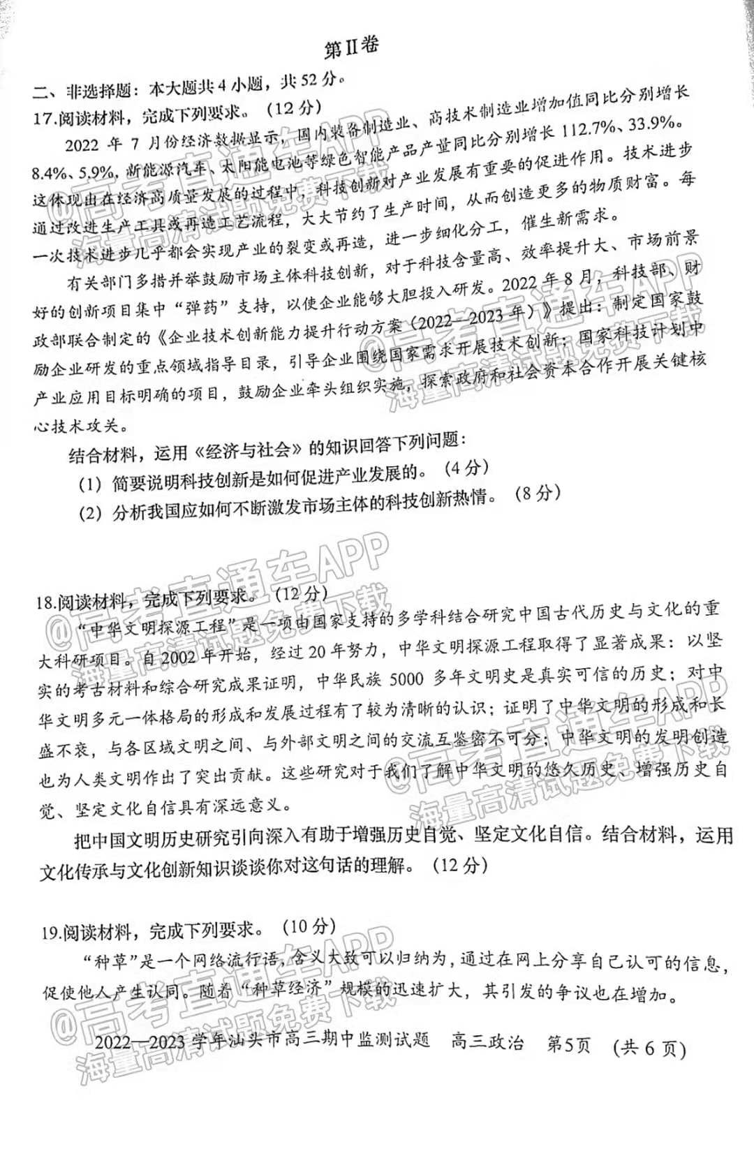 目前2023广东汕头高三10月市统考政治试卷已更新,具体试卷情况如下,如果大家想要了解更多试卷内容,可以进入高考100网进行查看,本试卷共6页,仅供参考。