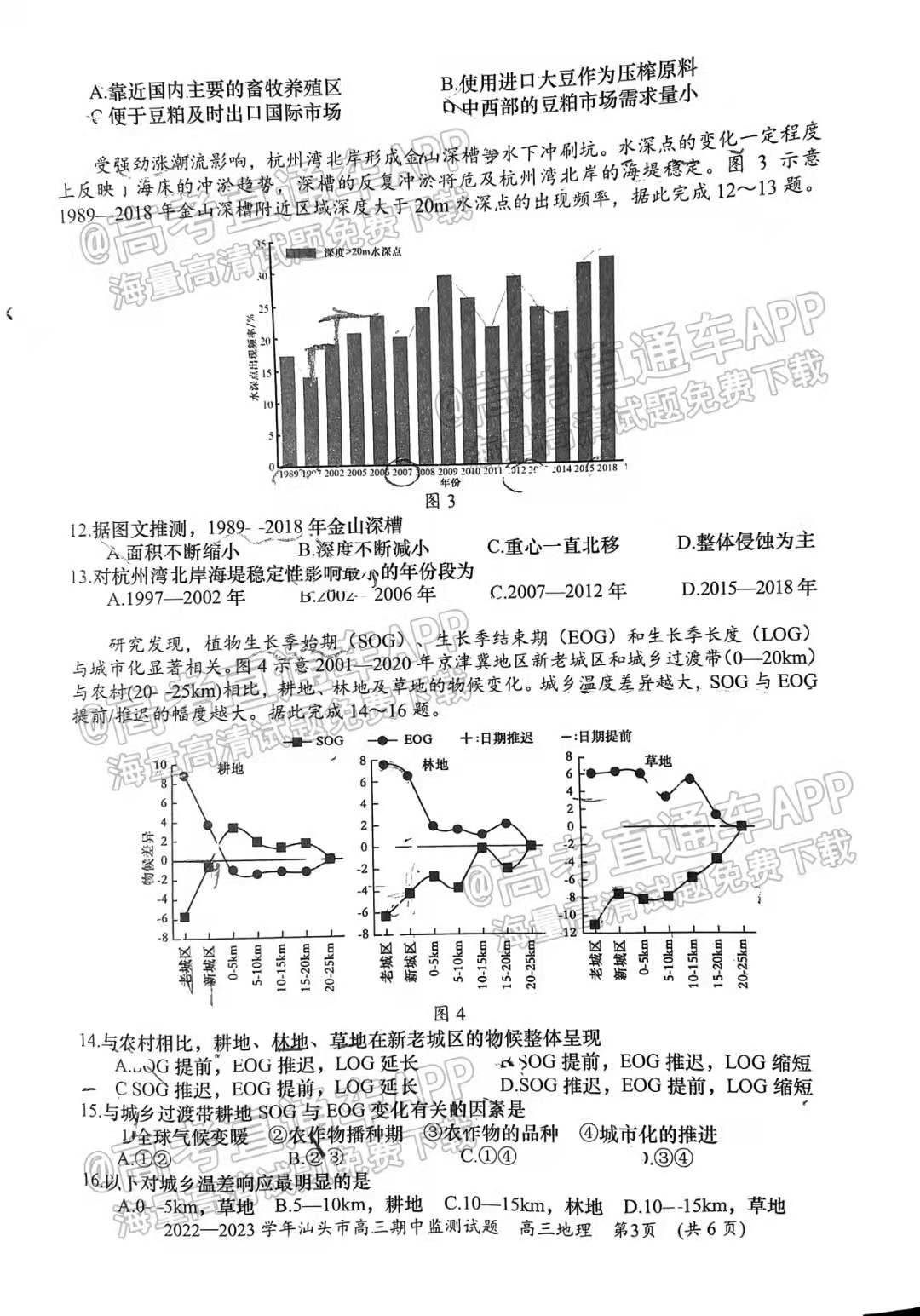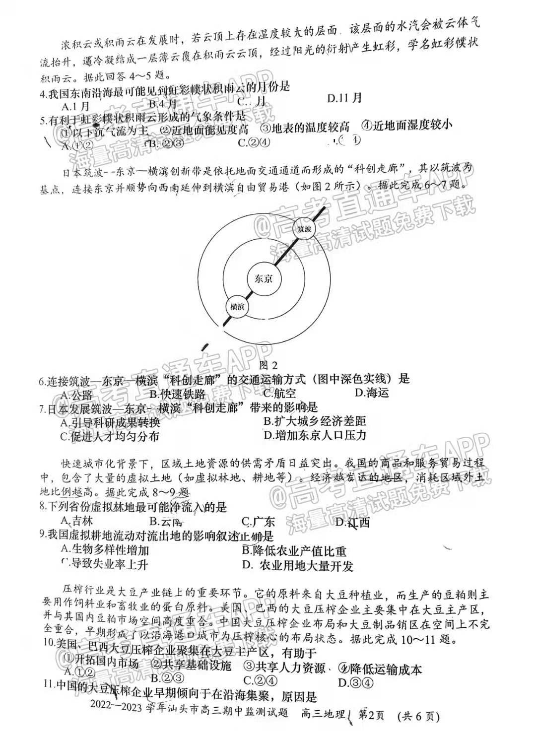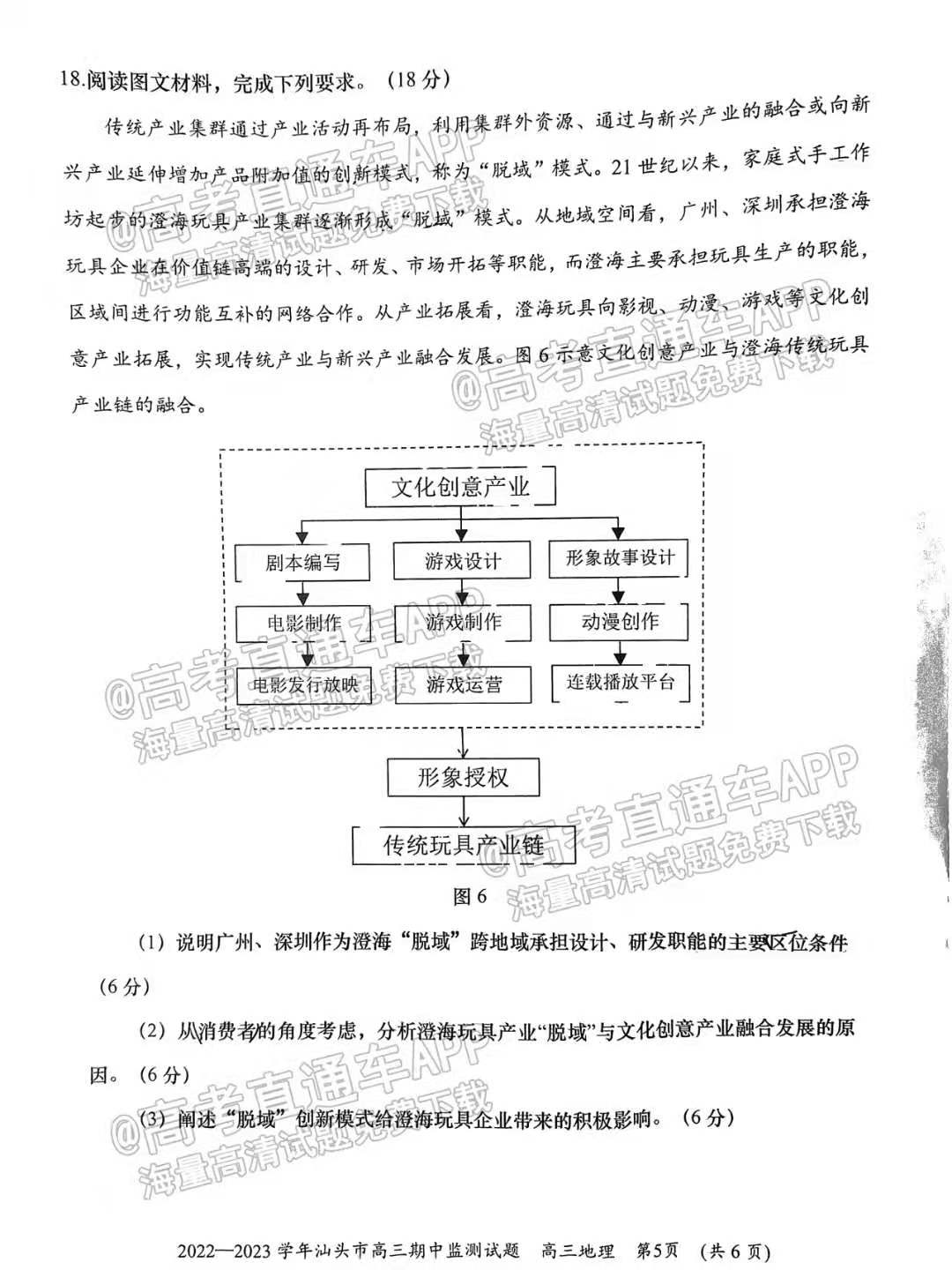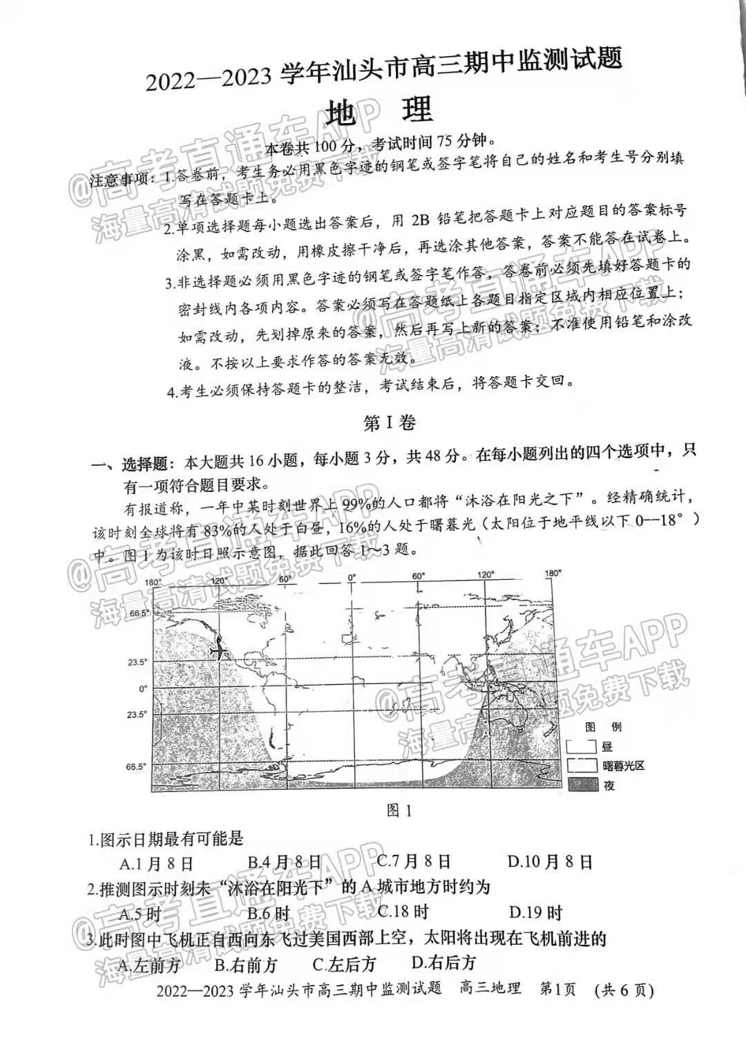 目前2023广东汕头高三10月市统考地理试卷已更新,具体试卷情况如下,如果大家想要了解更多试卷内容,可以进入高考100网进行查看,本试卷共6页,仅供参考。