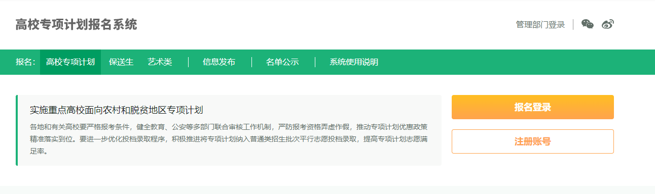 一、2026高校专项计划报名系统入口