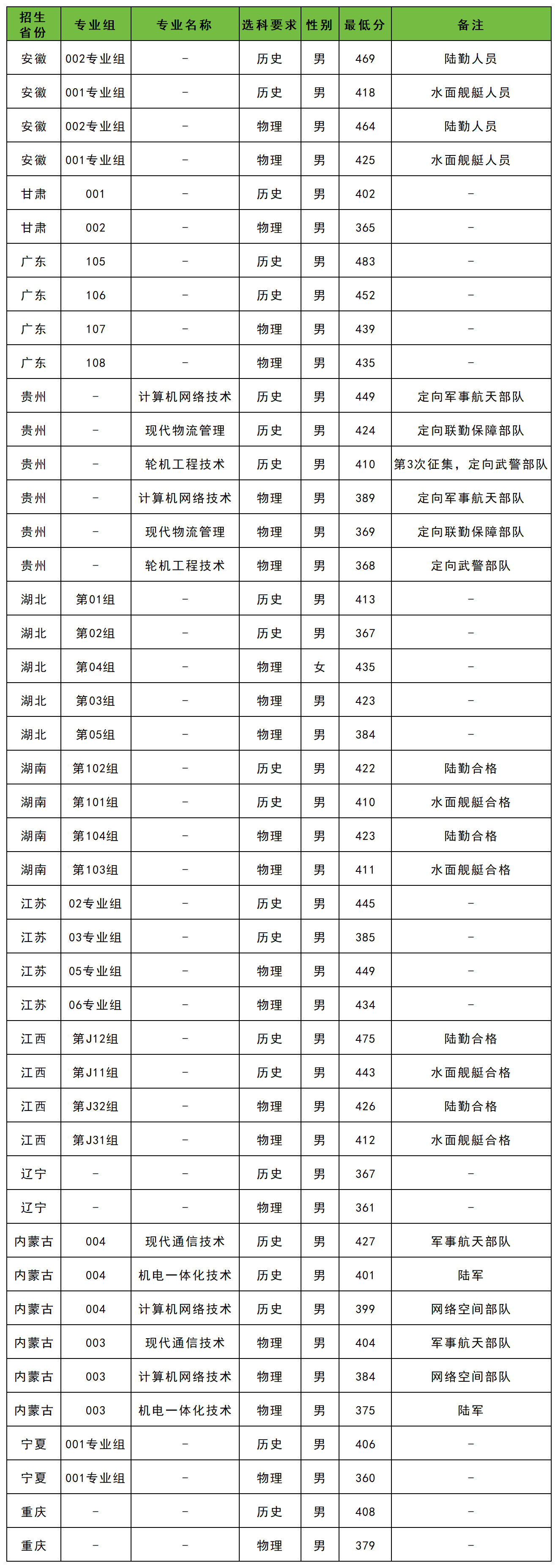 下面是武汉交通职业学院2025年在全国各省定向士官招生分数线一览表,供参考:
