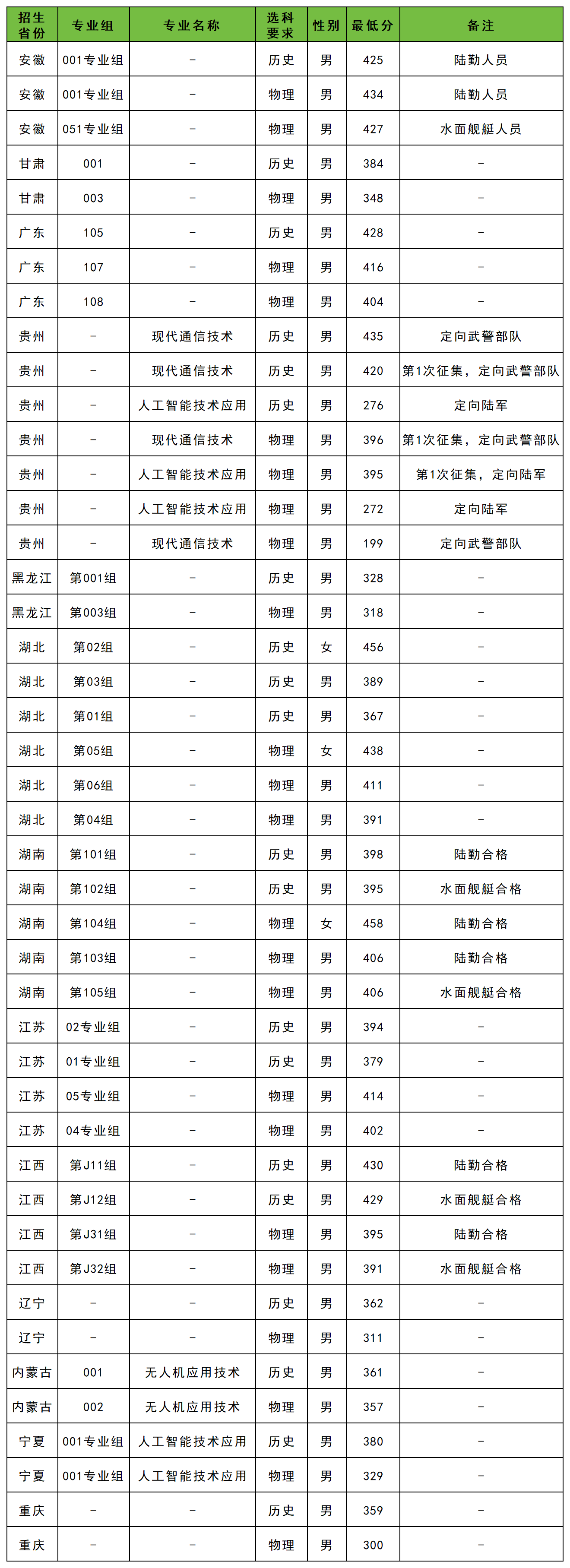 下面是武昌职业学院2025年在全国各省定向士官招生分数线一览表,供参考: