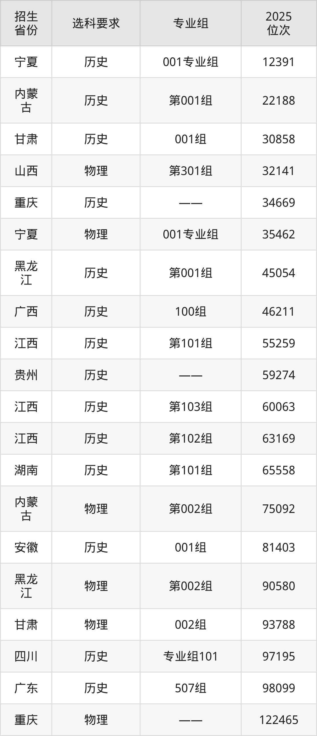 宜春职业技术学院2025年在全国各省的位次差异较大,最高位次是12391位(宁夏历史类)、最低位次是387927位(广东物理类)。各省具体位次请看下图: