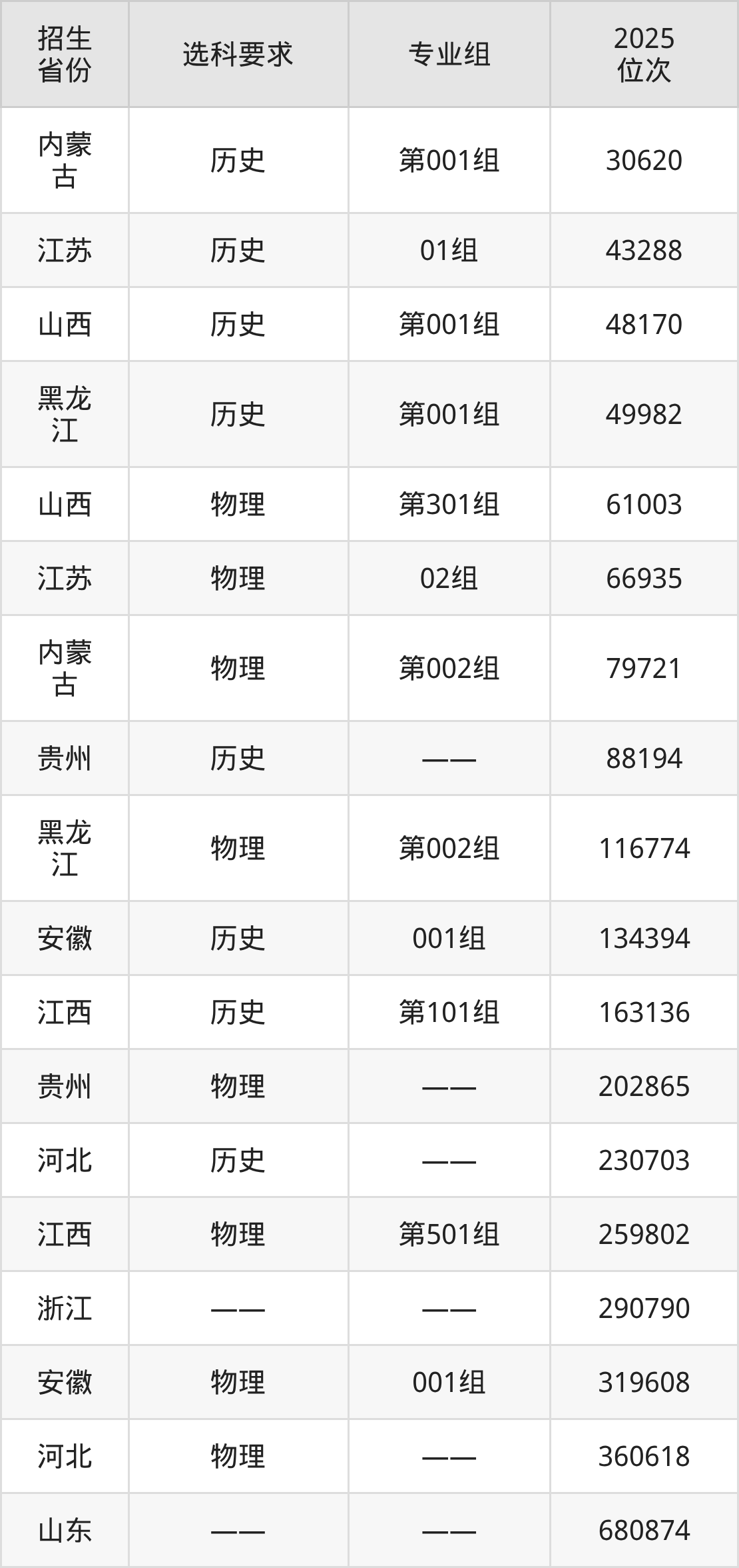潍坊工商职业学院2025年在全国各省的位次差异较大,最高位次是30620位(内蒙古历史类)、最低位次是680874位(山东)。各省具体位次请看下图: